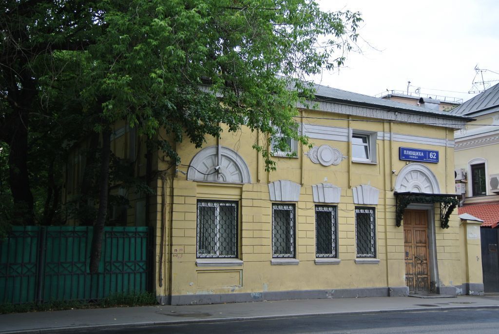 1. Ансамбль:местоположение и градостроительная характеристика ансамбля XIX века, участвующего в формировании застройки улицы Плющихи, его роль в композиционно-планировочной структуре квартала (согласно схеме предмета охраны);объемно-пространственная композиция и пространственно-планировочная структура ансамбля, включая местоположение зданий, габариты, высотные отметки, соотношение застроенных и незастроенных территорий.2. \"Главный дом\" (строение 1):местоположение и градостроительные характеристики здания 1838 года, 1894 года, участвующего в формировании застройки улицы Плющихи, его роль в композиционно-планировочной структуре квартала и ансамбля (согласно схеме предмета охраны);объемно-пространственная композиция деревянного на каменном фундаменте двухэтажного, частью одноэтажного здания 1838 года, 1894 года, Г-образной формы в плане, включая высотные отметки по венчающему карнизу (согласно схеме предмета охраны);крыша XIX века, ее конфигурация, материал, характер кровельного покрытия, высотные отметки по конькам;композиционное решение и архитектурно-художественное оформление фасадов 1838 года, 1895 года, включая размер, форму, местоположение и оформление оконных и дверных проемов, рустовку простенок первого этажа, креповки боковых осей с парадным входом и широким окном в нише, архитравы с полуциркульными профилированными архивольтами с рустовкой в люнетах, веерные замки над окнами, подоконные полочки, филенка, лепная композиция с картушем, розетками и пикой по центральной оси между окон второго этажа, антаблемент с гладким фризом и профилированный венчающий карниз (согласно схеме предмета охраны);материал и характер отделки фасадных поверхностей 1838 года, 1895 года, включая руст, гладкую штукатурку с окраской;колористическое решение фасадов 1838 года, 1895 года;пространственно-планировочная структура интерьеров здания в пределах капитальных стен и перекрытий 1838 года, 1895 года (согласно схеме предмета охраны);капитальные стены и перекрытия 1838 года, 1895 года, их конструкция и материал (согласно схеме предмета охраны);лестница 1895 года, ее местоположение, конструкция, материал и оформление (согласно схеме предмета охраны);архитектурно-художественное оформление интерьеров 1838 года, 1895 года (согласно схеме предмета охраны);печи XIX века, их местоположение, конструкция, материал, оформление (согласно схеме предмета охраны);характер оформления, материал и колористическое решение оконных и дверных проемов на XIX век.3. \"Флигель\" (строение 2):местоположение и градостроительные характеристики здания, участвующего в формировании фронта застройки улицы Плющихи, его роль в композиционно-планировочной структуре застройки квартала и ансамбля (согласно схеме предмета охраны);объемно-пространственная композиция сложной формы в плане разновысотного, смешанного типа здания с подвалом 1894 года, включая пятигранный угловой объем, завершенный шатром со шпилем, одноэтажный объем-тамбур главного входа с аттиком, ризалит юго-западного фасада, высотные отметки по венчающим карнизам (согласно схеме предмета охраны); крыши, шатры 1894 года, их конструкция, конфигурация, характер кровельного покрытия, высотные отметки по конькам, шпилям и аттику, слуховое окно; композиционное решение и архитектурно-художественное оформление фасадов 1894 года, включая мест