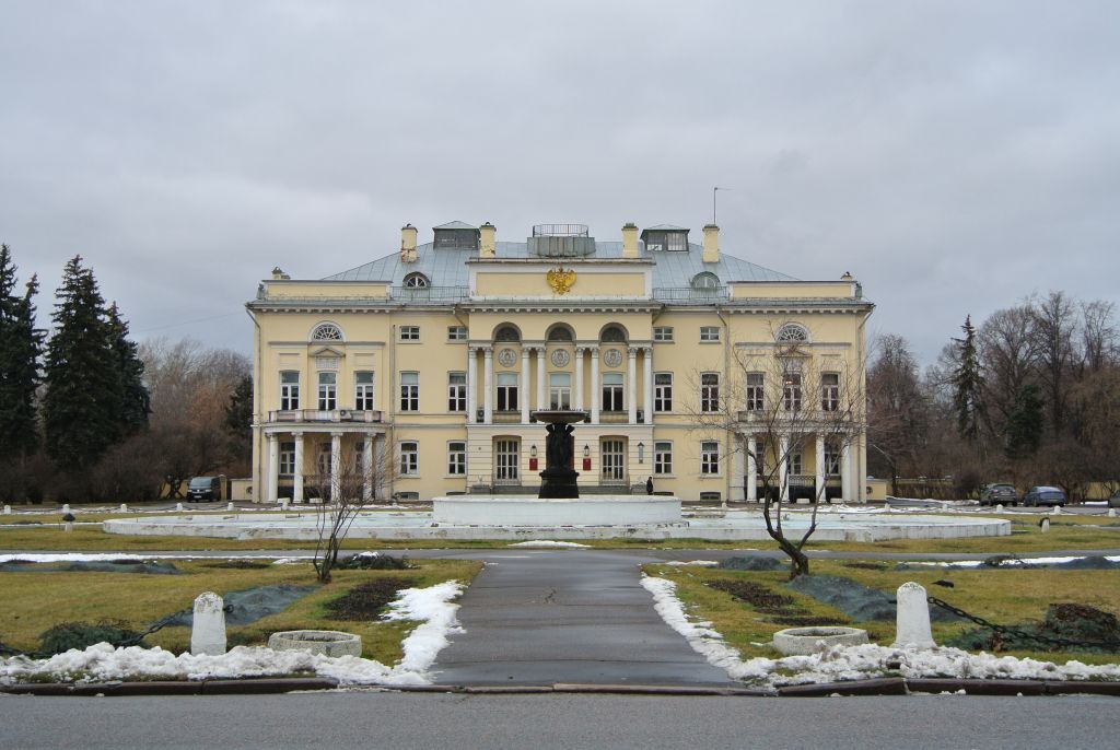 местоположение и градостроительные характеристики здания середины XVIII века, 1790–1800-х годов, 1830-х годов, второй половины XIX века, его роль композиционно-планировочной структуре парадного двора ансамбля Александринского дворца и усадьбы \"Нескучное\" (согласно схеме предмета охраны);объемно-пространственная симметричная композиция прямоугольного в плане здания середины XVIII века, 1790–1800-х годов, 1830-х годов, второй половины XIX века, с портиком и открытыми полукруглыми балконами с ризалитом, портиком-галереей с террасой, в том числе высотные отметки по венчающим карнизам, аттикам, парапетам балконов и фронтонам (с учетом реставрационных работ конца 1980-х годов) (согласно схеме предмета охраны);крыши, их конструкция, конфигурация, материал, характер кровельного покрытия, в том числе высотные отметки по конькам, включая слуховые окна и световые фонари (с учетом реставрационных работ конца 1980-х годов);композиционное решение и архитектурно-художественное оформление фасадов середины XVIII века, 1790–1830-х годов, второй половины XIX века, включая размер, форму, местоположение, оформление оконных и дверных проемов, в том числе белокаменный цоколь, ленточный штукатурный руст центрального ризалита первого этажа, лепные композиции в филенках, гладкие филенки, треугольные сандрики над центральными осями боковых ризалитов, аркаду портика, образованную четырьмя парами колонн коринфского ордера, карниз с модульонами над центральным и боковыми ризалитами, центральный прямоугольный аттик с гербом России, пониженные аттики боковых ризалитов, сильно выступающие полукруглые балконы на невысоких колонках, металлические ажурные решетки ограждений между колоннами портика и балконами, полукруглые чугунные решетчатые балконы в боковых ризалитах, мраморные фигуры собак на парадном крыльце дворца (с учетом реставрационных работ конца 1980-х годов) (согласно схеме предмета охраны);наружные каменные лестницы, примыкающие к главному фасаду и к парковому фасаду, их местоположение, конструкция и материал (с учетом реставрационных работ конца 1980-х годов) (согласно схеме предмета охраны);материал и характер отделки фасадных поверхностей: белый камень, ленточная рустовка, гладкая штукатурка с окраской, чугунное литье решеток (с учетом реставрационных работ конца 1980-х годов);колористическое решение фасадов середины XVIII века, 1790–1800-х годов, 1830-х годов, второй половины XIX века;пространственно-планировочная структура интерьеров здания в пределах капитальных стен, пилонов, колонн, прямоугольных и арочных проемов, перегородок, перекрытий середины XVIII века, 1790–1800-х годов, 1830-х годов, второй половины XIX века, включая анфиладу парадных залов первого и второго этажей (с учетом реставрационных работ конца 1980-х годов) (согласно схеме предмета охраны);капитальные стены, пилоны, колонны, перегородки и перекрытия середины XVIII века, 1790–1800-х годов, 1830-х годов, второй половины XIX века, в том числе своды с распалубками – крестовые, сомкнутые, коробовые, их конструкция и материал (с учетом реставрационных работ конца 1980-х годов) (согласно схеме предмета охраны);лестницы XVIII–XIX веков, их местоположение, конструкция, материал (парадная чугунная, служебные деревянная и белокаменная), декоративное оформление (с учетом реставрационных работ конца 1980-х годов) (согласно схеме предмета охр