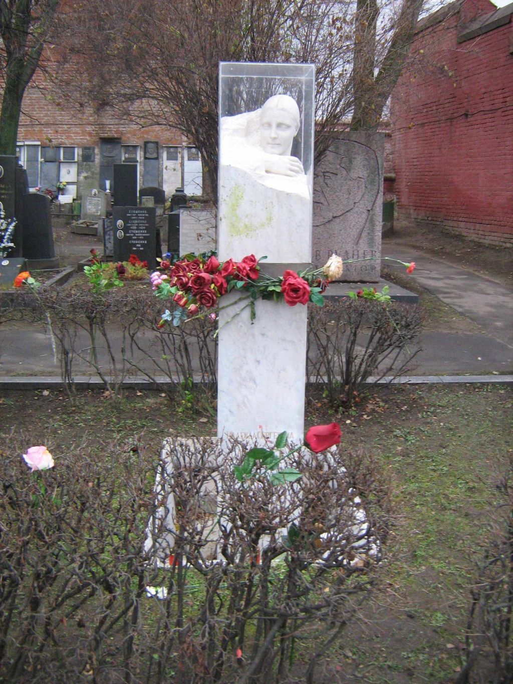 местоположение (участок 1, ряд 43а, место 7) и габариты надгробия 1933 года в общей структуре Новодевичьего кладбища;объемно-пространственная композиция надгробия 1933 года;архитектурно-художественное решение надгробия: стела с пластическим портретом Н.С.Аллилуевой-Сталиной;основание, заглубленное в землю, прямоугольное в плане, со ступенями;мемориальные надписи;бордюрное ограждение, состоящее из горизонтальных равновеликих элементов, установленное по периметру участка;материал и техника отделки надгробия: мрамор, обработка \"под шубу\", шлифовка, полировка, резьба, золочение.Изменение предмета охраны может быть осуществлено в порядке и случаях, предусмотренных законодательством об объектах культурного наследия.