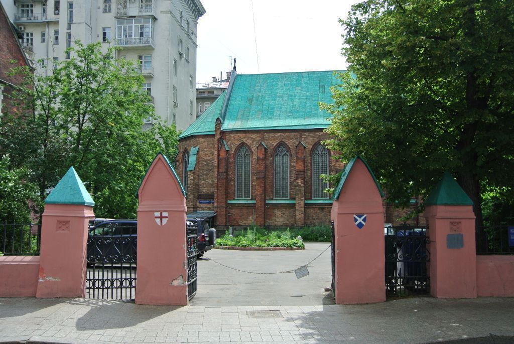 1. Ансамбль: местоположение и градостроительные характеристики ансамбля конца XIX века, участвующего в формировании фронта застройки Вознесенского и Брюсова переулков, его роль в композиционно-планировочной структуре квартала; объемно-пространственная структура ансамбля конца XIX века, включая габариты, высотные и силуэтные характеристики зданий и сооружений; пространственно-планировочная структура ансамбля конца XIX века, включая соотношение застроенных и незастроенных пространств, местоположение зданий, сооружений и элементов благоустройства, характер озеленения. 2. «Дом капеллана, 1894 г., архитектор Б.В. Фрейденберг» (строение 1): местоположение и градостроительные характеристики здания 1894 года, участвующего в формировании фронта застройки Вознесенского переулка, его роль в композиционно‑планировочной структуре ансамбля и квартала; объемно-пространственная композиция двухэтажного, с подвалом здания 1894 года, включая ризалит с граненым эркером в уровне первого этажа, крыльцо, высотные отметки по венчающим карнизам; крыша 1894 года, ее конструкция, конфигурация, материал, характер кровельного покрытия, высотные отметки по конькам; композиционное решение и архитектурно-художественное оформление фасадов 1894 года, включая местоположение, размер, форму, оформление оконных и дверных проемов, скульптурный барельеф на южном фасаде с гипсовым изображением андреевского креста, геральдических символов Англии, Шотландии и Ирландии (роз, чертополох, клевер) и памятной надписью на английском языке «Построено для церкви Святого Андрея в память о Роберте Макгилле его вдовой. 1894 года от Рождества Христова», профилированные тяги и междуэтажные карнизы; материал и характер отделки фасадных поверхностей 1894 года, в том числе неоштукатуренные краснокирпичные стены; колористическое решение фасадов 1894 года (уточняется в процессе реставрационных исследований); пространственно-планировочная структура интерьеров здания 1901 года в пределах капитальных стен, перегородок и перекрытий; капитальные стены, перегородки и перекрытия 1894 года, их конструкции и материал; лестница 1894 года, ее местоположение, конструкция, материал, декоративное оформление; архитектурно-художественное оформление интерьеров 1894 года, в том числе тянутые потолочные карнизы (уточняется в процессе реставрационных исследований); печи, камин 1894 года, их местоположение и оформление (уточняется в процессе реставрационных исследований); столярные заполнения оконных и дверных проемов конца XIX века, их материал и характер оформления. 3. «Церковь Святого Андрея, 1882-1887 гг., 1895 г. архитекторы Н. Фриман, Б.В. Фрейденберг» (строение 3): местоположение и градостроительные характеристики церкви 1882‑1887 годов, 1895 года, участвующей в формировании фронта застройки Брюсова переулка, ее роль в композиционно-планировочной структуре ансамбля и квартала; объемно-пространственная композиция прямоугольного в плане с граненой апсидой здания-церкви 1882-1887 годов, 1895 года, включая пятиярусную башню-колокольню и трехэтажную пристройку по сторонам притвора (нартекса), в том числе высотные отметки по венчающим карнизам, парапетам, щипцовым фронтонам (вимпергам), башням и их завершениям (пинаклям) (с учетом реставрационных работ 1996 года); крыши, шатровые завершения конца XIX века, их конструкция, конфиг