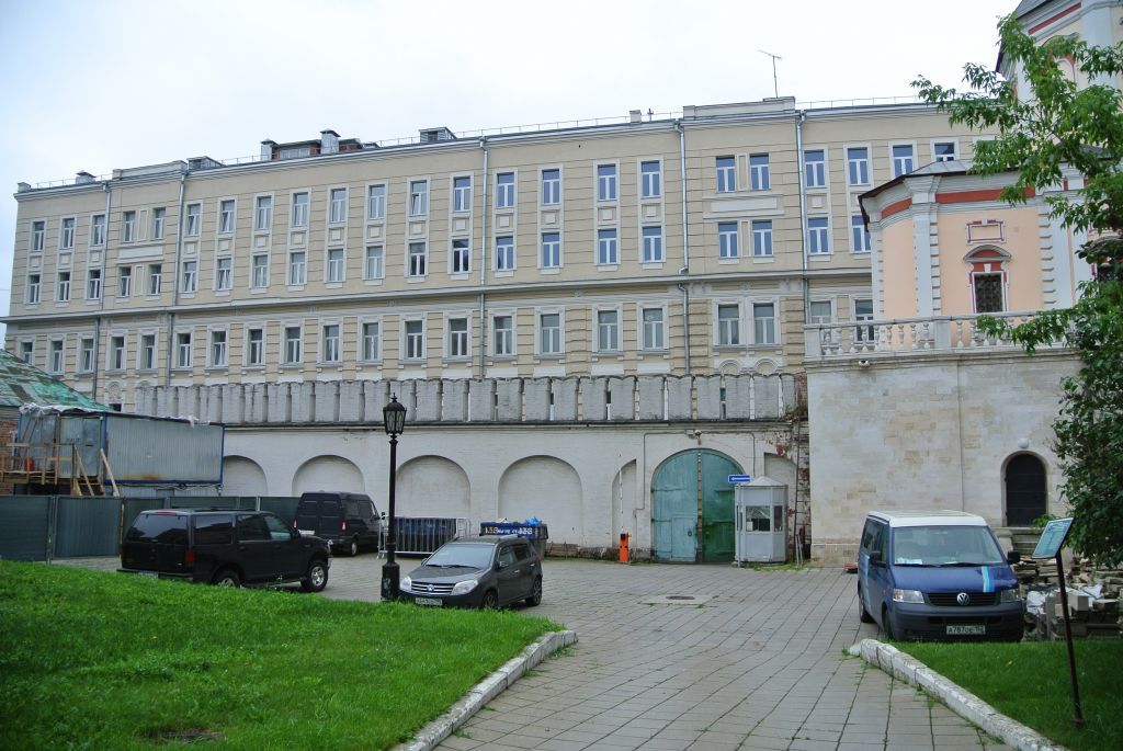 местоположение и градостроительные характеристики ограды с воротами конца XVII – начала XVIII века, участвующей в формировании фронта застройки Крапивенского переулка, ее роль в композиционно-планировочной структуре ансамбля и квартала (согласно схеме предмета охраны); объемно-пространственная композиция ограды с воротами конца XVII – начала XVIII века, состоящей из глухой стены, в том числе ее материал, конструкция, высотные отметки (с учетом реставрационных работ 2015 года);колористическое решение ограды с воротами конца XVII – начала XVIII века (уточняется в процессе реставрационных исследований);архитектурно-художественное оформление ограды с воротами конца XVII – начала XVIII века, включая белокаменный цоколь, прясла глухой стены ограды с лопатками, машикули, белокаменные водометы и зубцы, арочные ворота с профилированным архивольтом, глухую аркаду со стороны двора, две металлические створки ворот (с учетом реставрационных работ 2015 года).Изменение предмета охраны может быть осуществлено в порядке и случаях, предусмотренных законодательством об объектах культурного наследия.