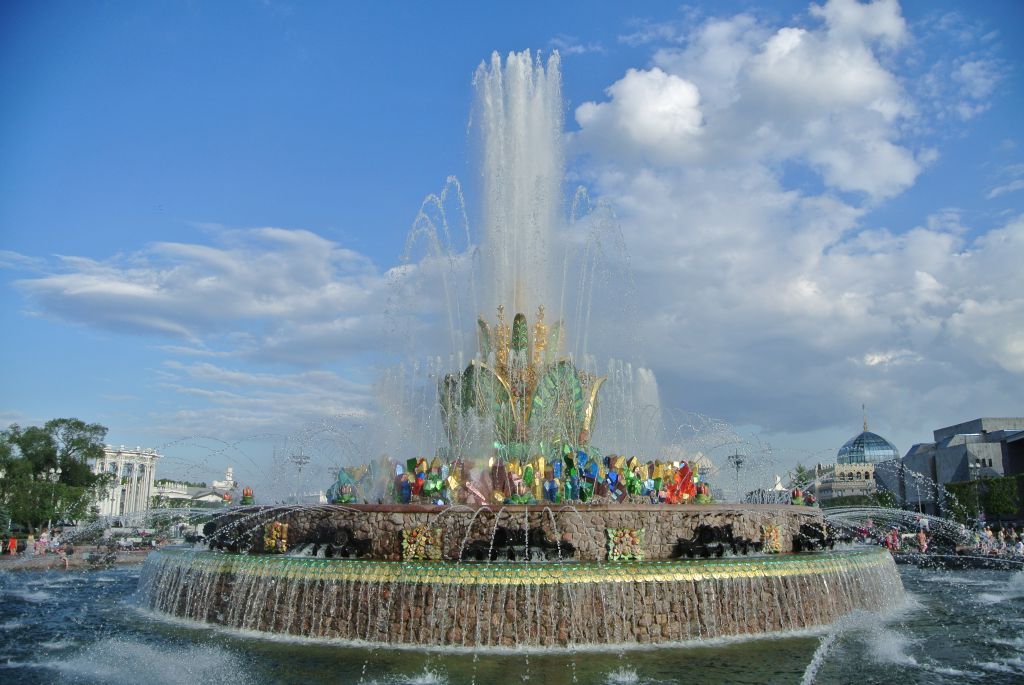 местоположение декоративного гидротехнического сооружения, его роль в композиционно-планировочной структуре комплекса ВДНХ (согласно схеме предмета охраны);объемно-пространственная композиция сооружения 1954 года, включающая водный бассейн с главным и малыми фонтанами, подземное помещение насосной станции с переходной галереей, в том числе каркас, световые фонари, опоры и перекрытия, их конструкции и материал (с учетом реставрационных работ 2018 года; согласно схеме предмета охраны);композиционное решение и архитектурно-художественное оформление сооружения 1954 года, включающего водный бассейн с гранитным парапетом, шестнадцатью гранитными тумбами-постаментами с бронзовыми волютами и скульптурными бронзовыми композициями-натюрмортами, шестнадцатью пристенными фонтанами с бронзовыми скульптурами гусей, малыми горизонтальными фонтанами с чугунными скульптурами рыб, шестнадцатью вертикальными малыми фонтанами, четырьмя кольцевыми малыми фонтанами, главный фонтан в виде чаши цветка с объемными рельефными лепестками и тычинками на трехступенчатом стилобате, скульптурным декором, декоративными объемными композициями в виде кристаллов, цветов и листьев, горельефами, чугунными раковинами-чашами, \"чешуйчатым\" орнаментальным поясом (согласно схеме предмета охраны), в том числе габариты и высотные отметки (с учетом реставрационных работ 2018 года);гидравлическая система сооружения 1954 года, включая трассировку водных струй (с учетом реставрационных работ 2018 года; согласно схеме предмета охраны);конструкция, материал, характер обработки (фактура) поверхностей, колористическое решение сооружения 1954 года, в том числе смальта, художественный металл, гранит (с учетом реставрационных работ 2018 года);декоративная подсветка сооружения 1954 года (с учетом реставрационных работ 2018 года).Изменение предмета охраны может быть осуществлено в порядке и случаях, предусмотренных законодательством об объектах культурного наследия.