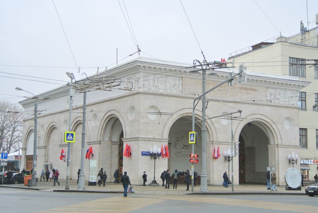 Станция Московского метрополитена Кольцевой линии "Белорусская", 1951 г., архитекторы И.Г.Таранов, Ю.А.Черепанов, Н.А.Быкова, Я.В.Татаржинская, А.А.Марова, З.Ф.Абрамова, художник Г.И.Опрышко, скульпторы С.М.Орлов, С.М.Рабинович, И.Л.Слоним, М.Г.Манизер, и
