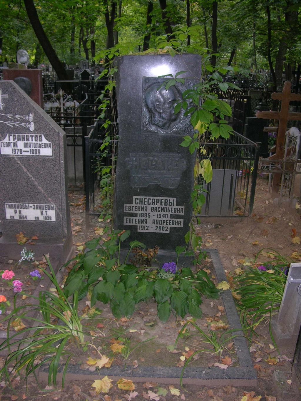 существующее местоположение в общей структуре Ваганьковского кладбища и существующие габариты надгробного сооружения в целом, включая бордюрное ограждение;объемно-пространственная композиция надгробного сооружения второй половины XIX в.;архитектурно-художественное решение надгробного сооружения, в том числе материал и техника обработки (гранит, металл, полировка, чеканка, резьба);стела с неровными краями, с барельефным портретом А.Е.Снесарева;постамент;бордюрное ограждение, состоящее из блоков, установленное по периметру участка.Предмет охраны может быть дополнен при проведении натурных реставрационных исследований.