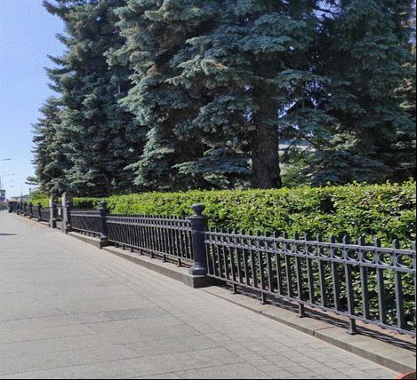 Градостроительные характеристики:- местоположение, градостроительные характеристики ограды, расположенной по линии ул. Волхонка, Колымажного и М. Знаменского переулков и фиксирующей исторические границы владения, ее роль в композиционно-планировочной структуре квартала в целом.Архитектурные характеристики:- объемно-пространственная композиция ограды, 1912 г.;- материал, конструкция и высотные отметки ограды, 1912 г.;- композиционное решение и архитектурно-художественное оформление цоколя и столбов ограды, облицованных гранитном, и металлических решеток прясел ограды, 1912 г.;- колористическое решение ограды, 1912 г.