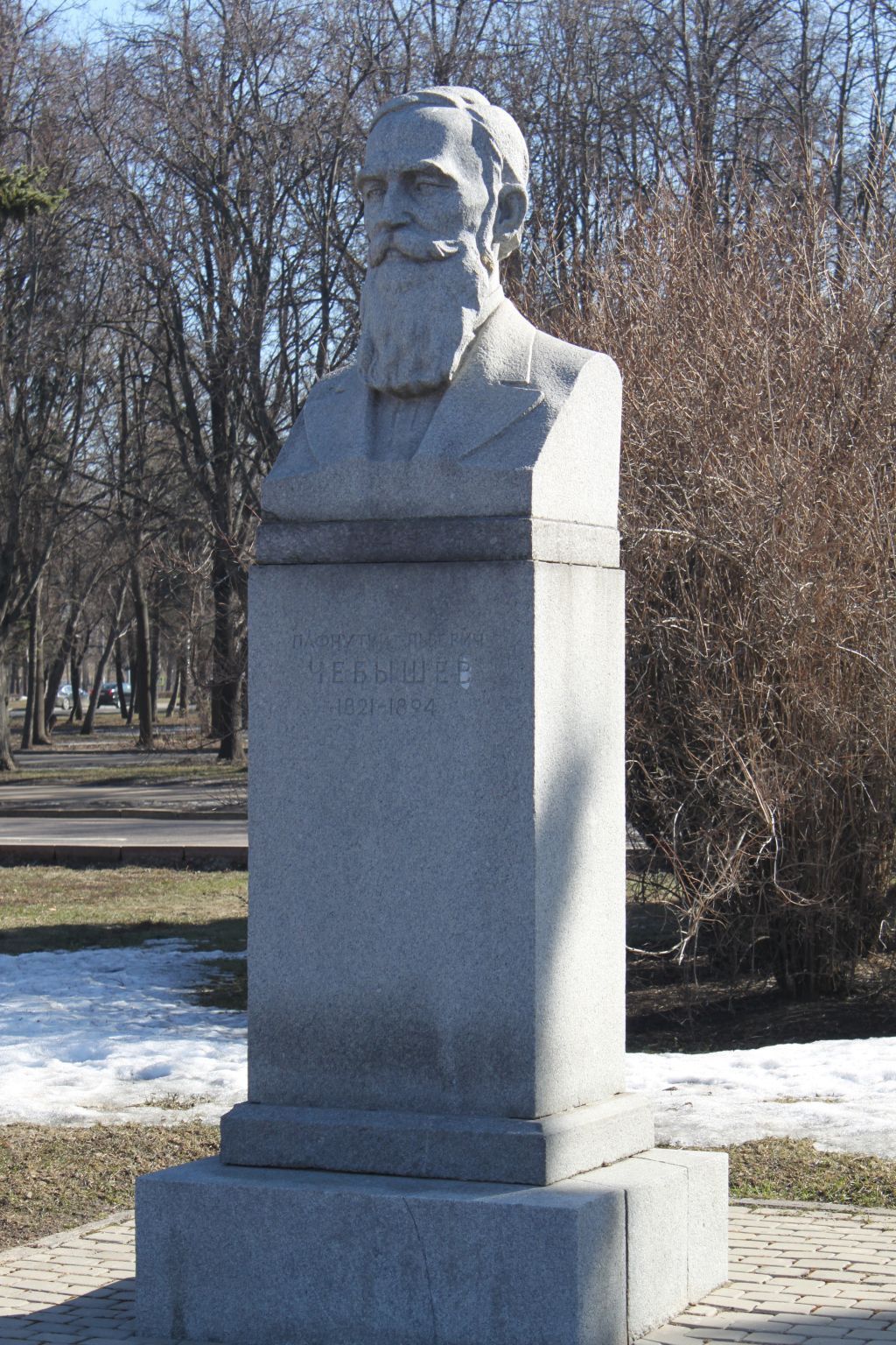 местоположение памятника, его роль в композиционно-планировочной структуре ансамбля \"Аллея ученых\" (согласно приложению 1 к настоящему предмету охраны);объемно-пространственная композиция и архитектурно-художественное оформление памятника 1954 года, включающие гранитный бюст П.Л.Чебышева с плинтом, на прямоугольном постаменте с цоколем, на выступающем стереобате, включая их габариты и высотные отметки (с учетом реставрационных работ 2017 года; согласно приложению 1 к настоящему предмету охраны);конструкция, материал (светло-серый (янцевский) гранит), характер и виды обработки поверхностей (тонкая и зернистая шлифовка, рельеф), колористическое решение памятника 1954 года;шрифтовая композиция 1954 года: \"ПАФНУТИЙ ЛЬВОВИЧ ЧЕБЫШЕВ 1821-1894\", ее местоположение, характер шрифта, способ нанесения (контррельеф), колористическое решение (согласно приложению 1 к настоящему предмету охраны).Изменение предмета охраны объекта культурного наследия регионального значения (ансамбля) \"Комплекс зданий Московского государственного университета им. М.В.Ломоносова\" может быть осуществлено в порядке и случаях, предусмотренных законодательством об объектах культурного наследия.