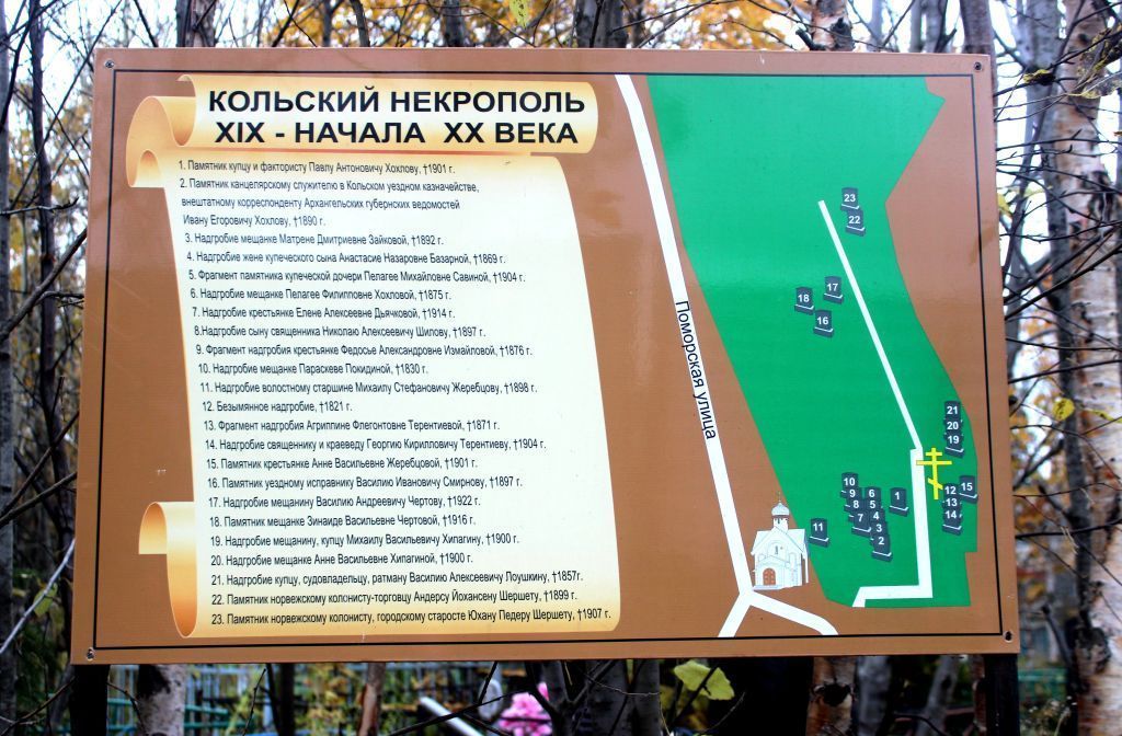 Предметом охраны объекта культурного наследия регионального значения «Кольский некрополь» является:1. Расположение некрополя вдоль улицы Поморской.2. Местоположение нижеследующих могил, габариты захоронений, а также принадлежащие им пешеходные дорожки:- надгробие на могиле Павла Антоновича Хохлова, 1901 г;- памятник Ивану Егоровичу Хохлову, 1890 г.;- надгробие на могиле Матрены Дмитриевны Зайковой, 1892 г.;- надгробие на могиле Анастасии Назаровне Базарной, 1869 г.;- надгробие на могиле Пелагеи Михайловне Савиной, 1904 г.;- надгробие на могиле Пелагеи Филипповны Хохловой, 1875 г.;- надгробие на могиле Елены Александровны Дьячковой, 1914 г.;- надгробие на могиле Николая Шилова, 1897 г.;- надгробие (фрагмент) на могиле Федосьи Александровны Измайловой, 1876 г.;- надгробие на могиле Пелагеи Покидиной, 1830 г.;- надгробие на могиле Михаила Степановича Жеребцова, 1898 г.;- надгробие, датируемое 1821 г., фамилия не известна;- надгробие на могиле Агриппины Терентьевой (фрагмент), 1871 г.;- надгробие на могиле Георгия Кирилловича Терентьева, 1904 г.;- надгробие на могиле Анны Васильевны Жеребцовой, 1901 г.;- надгробие на могиле Василия Ивановича Смирнова, 1897 г.;- надгробие на могиле Василия Андреевича Чертова, 1922 г.;- надгробие на могиле Зинаиды Васильевны Чертовой, 1916 г.;- надгробие на могиле Михаила Васильевича Хипагина, 1900 г.;- надгробие на могиле Анны Васильевны Хипагиной, 1900 г.;- надгробие на могиле Василия Алексеевича Лоушкина, 1857 г.;- надгробие на могиле Андерса Шершет, 1899 г.;- надгробие на могиле Йохана Шершет, 1907 г.