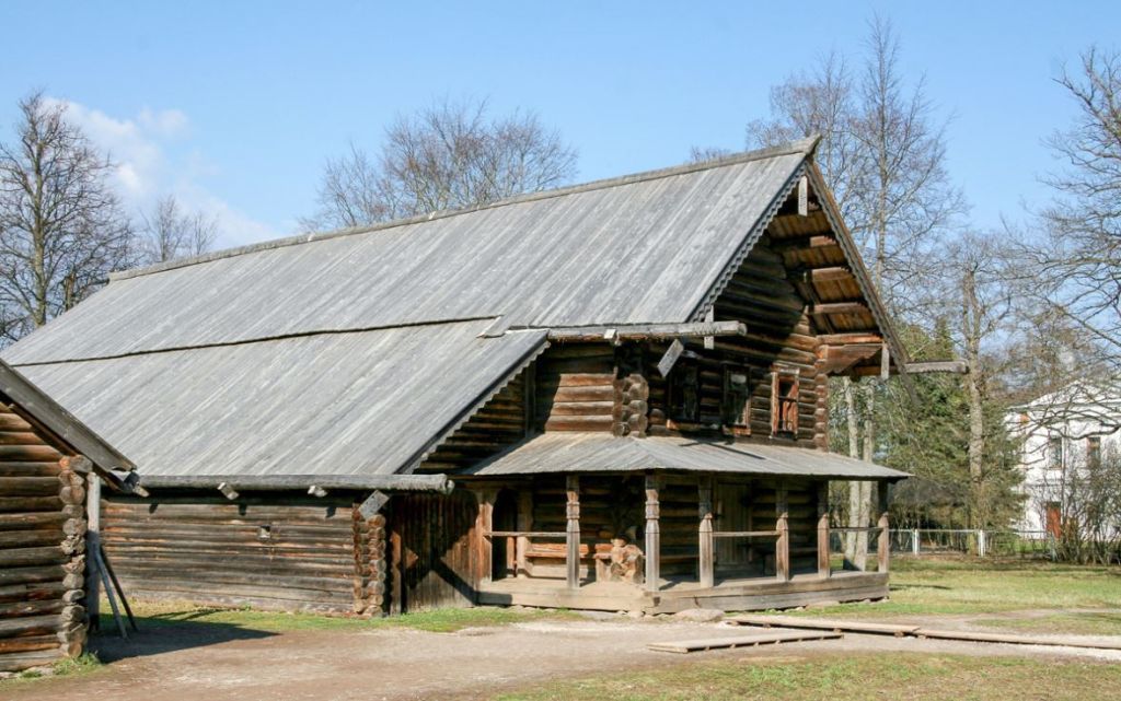 А. Градостроительная охрана1.Расположение здания.- Композиционная роль в структуре музея.- Местоположение по Генеральному плану музея народного деревянного зодчества «Витославлицы».Б. Архитектурная охрана2.Здание в целом:- Материал – дерево (сосна, ель), признанный пригодным для эксплуатации, в том числе, приобретенный в результате достоверной реставрации.- Конфигурация плана здания по внешнему контуру, расположение внутренних стен и столбов. По планировке относится к домам, построенным «брусом», где все части – жилая (изба), сени, хозяйственный двор - располагаются на одной оси, перпендикулярной улице. Отличием этого дома являются «открытые» сени, когда двор не имеет внутренней стены, а также расширенный в одну сторону хозяйственный двор, объединенный с каретником-«передком».- Объемно-пространственное решение и габариты дома. Один из вариантов северно-русского двухъярусного дома-комплекса, где под одной крышей находятся жилая часть (изба) и хозяйственный двор. Изба (сруб четырехстенок) стоит на высоком подклете (подизбице), который с двух сторон окружен открытой галерей «прикрольком». На улицу (южный фасад) изба имеет три окна. На первом ярусе хозяйственного двора располагается «холодный двор» с воротами и помещения для содержания скота – «хлева». На втором ярусе, в уровне избы, находится «сенник». Изба и хозяйственный двор покрыты единой крышей, конек которой проходит по оси избы. Из-за расширенного двора и каретника западный скат крыши длиннее, что придает дому ассиметричную композицию. Каретник имеет на уличной стороне ворота. Крыша галереи односкатная и «обходит» подклет с двух сторон. Вход в дом осуществляется из галереи через дверь рядом с каретником и далее по лестнице в сени. Вход в избу расположен со стороны сеней в задней стене. Вход в подклет расположен в южной стене, с галереи.- Формы, уклоны, типы крыш и кровель. - Архитектурное решение фасадов. Расположение, количество, характер дверных и оконных проемов.- Декоративное убранство фасадов и интерьеров.- Конструктивные и типологические особенности срубов, каркасных конструкций, элементов и узлов, обработка поверхности древесины.3.Фундаменты. - Система фундаментов - столбчатые буто-бетонные под углами срубов, ленточная «забирка» из валунов между фундаментами, изоляция из бересты. Конструкция, расположение, материал, характер.Фото 44.Стены. - Рубленые стены из круглых бревен (подклет, каретник, хлева, сенник); бревен, протесанных с внутренней стороны «в лас» (изба в пределах жилого этажа). Конструкция, расположение, параметры, характер обработки поверхности.- Угловые соединения срубов «в обло». Характер обработки, размеры.- Выпуски бревен сруба (помочи) для устройства большего выноса крыши. Конструкция, расположение, параметры, характер обработки поверхности.- Припазовка бревен между собой по длине, прокладка мхом в пределах жилого этажа и в хлевах. Характер обработки и конопатки пазов, размеры.- Стены, забранные в столбы (восточная стена сеней и двора, южная стена каретника). Конструкция, расположение, параметры, характер обработки поверхности.- Столбы, поддерживающие заднюю часть сенника над хлевами. Конструкция, расположение, параметры.- Подтески на бревнах к дверным и оконным косякам (колодам). Характер обработки, размеры.- Следы на бревнах - гнезда, пазы, протески и