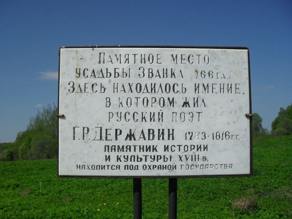 Памятное место бывшей усадьбы Г.Р. Державина "Званка"
