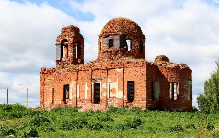 №№п/пНаименование, описание предмета охраны. А. Градостроительная охрана1.Расположение церкви с колокольней в структуре поселения: на возвышенном месте, у поворота проселочной дороги, идущей вдоль берега реки Ракомки. Храм является градостроительной доминантой д. Старое Ракомо.Б. Архитектурная охрана2.Здание в целом: общие плановые и высотные габариты храма. Объёмно-пространственная композиция здания. Храм состоит из двух объемов: собственно церкви и паперти с колокольней, примыкающей к центральной части западного фасада церкви. Церковь квадратная в плане, четырехстолпная, крестовокупольная, с одной апсидой и одной главой; Паперть прямоугольная в плане, примыкающая к центральной части западного фасада церкви; колокольня квадратная в плане, возвышающаяся на западной частью паперти, двухярусная, ярус звона прорезан высокими проемами и перекрыт сомкнутым сводом. Композиция, архитектурно-художественное и декоративное оформление фасадов в стиле позднего классицизма. Местоположение, конструкция, конфигурация первоначальных сохранившихся сводов и арок. Местоположение, габариты, конфигурация первоначальных дверных и оконных проемов. Конструкции и техника кладки фундаментов, цоколя и стен. Характер кладки цоколя с венчающим его кирпичным валиком. Первоначальный строительный материал (цоколь из каменных плит, стены из красного керамического кирпича), за исключением материалов, находящихся в деструктированном состоянии. Характер обработки фасадов и интерьеров (известковая штукатурка, известковая побелка), за исключением участков штукатурки, находящихся в деструктированном состоянии.3.Западный фасад церкви. Венчающий карниз стен. Вытянутые оконные проемы с клинчатой перемычкой (по одному в северной и южной частях). Южное окно, позднее переделано в дверь. Декор: квадровый руст в подоконных частях. Металлическая решётка в окне.4.Западный фасад паперти и колокольни. Паперть. Оформление фасада четырех пилястровым портиком. Дверной проем с клинчатой перемычкой в нише в центре фасада, по сторонам от него между пилястрами - две ниши. Декор: квадровый руст в подоконной части ниш, капители и базы пилястр. Металлические решётки в окнах. Колокольня. Высокий проем с полуциркульной аркой, угловые столбы, местоположение и сечение бруса для подвески колоколов, уступчатый венчающий карниз в уровне пяты арки. Декор: горизонтальный руст столбов.5.Северный фасад паперти и колокольни. Паперть. Раскреповка северо-западного угла пилястрой. Вытянутый оконный проем с клинчатой перемычкой по центру фасада. Декор: квадровый руст в подоконной части, выше - горизонтальный руст. Металлическая решётка в окне.Колокольня. Высокий проем с полуциркульной аркой, угловые столбы, местоположение и сечение бруса для подвески колоколов, уступчатый венчающий карниз в уровне пяты арки. Декор: горизонтальный руст столбов.6.Северный фасад церкви. Четырех пилястровый портик в центральной части фасада.Венчающий карниз стен и портика. Вытянутые оконные проемы с клинчатой перемычкой (один в центре портика, два по сторонам от него), ниши прямоугольной формы между крайними пилястрами. Оформление ниш рисованными рамами. Декор: квадровый руст в подоконных частях, капители и базы пилястр, штукатурные профильные наличники окна, сандрик с лучковым завершением над цен
