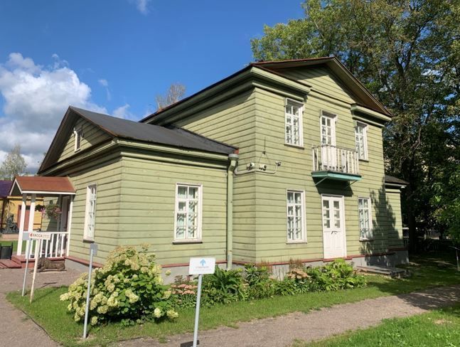 А. Градостроительная охрана Расположение: в юго-западной части города, на левом берегу Кересть, к западу от пересечения улицы Некрасова и улицы Косинова.Б. Архитектурная охрана.Здание в целом:Типология здания: прямоугольное в плане одноэтажное здание с центральным двухэтажным ризалитом, с двумя балконами и двумя входами; здание бревенчатое, на каменном цоколе, обшито тесом.Общие габариты, силуэт, планировочное решение, форма крыши, архитектурные элементы интерьера.Фасады в целом:Подлинный (воссозданный) материал стен, декор. Количество и расположение балконов, дверных и оконных проемов, крылец.Северо-западный фасад: - Подлинный (воссозданный) материал стен: бревенчатый сруб, обшитый тесом (вагонкой). - Пять осей проемов: по 1 оси оконных проемов в одноэтажных объемах, 3 оси проемов в центральном 2-х этажном ризалите; из них по два оконных проема в уровне обоих этажей; в уровне второго этажа дверной проем с выходом на балкон, расположенный на западной оси, в уровне первого этажа без проема.- Балкон на небольшом выступающем объеме с простым деревянным ограждением. - Прямоугольная форма всех проемов. - Восьмичастная расстекловка оконных заполнений.- Профилированные узкие рамочные наличники проемов.- П- образные сандрики над проемами второго этажа.- Филенчатые двери с остеклением.- Полуфронтон в завершении центрального ризалита.- Выступающий оштукатуренный цоколь.- Дощатый антаблемент всех объемов (фриз и венчающий карниз)- Фронтон в завершении одноэтажного объема.Северо-восточный фасад: - Подлинный (воссозданный) материал стен: бревенчатый сруб, обшитый тесом (вагонкой). - Две оси оконных проемов. - Прямоугольная форма проемов.- Профилированные узкие рамочные наличники проемов.- Восьмичастная расстекловка оконных заполнений.- Выступающий оштукатуренный цоколь.- Дощатый антаблемент всех объемов (фриз и венчающий карниз)Юго-восточный фасад: - Подлинный (воссозданный) материал стен: бревенчатый сруб, обшитый тесом (вагонкой). - Пять осей проемов: по 1 оси оконных проемов в одноэтажных объемах, 3 оси в центральном 2-х этажном ризалите; из них на центральной оси расположены дверные проемы: в уровне 1этажа с выходом на крыльцо (разобранное в настоящее время), в уровне второго этажа с выходом на балкон.- Балкон на кронштейнах с простым деревянным ограждением. - Прямоугольная форма всех проемов. - Восьмичастная расстекловка оконных заполнений.- Профилированные узкие рамочные наличники проемов.- П- образные сандрики над проемами второго этажа.- Филенчатые двери с остеклением.- Полуфронтон в завершении центрального ризалита.- Выступающий оштукатуренный цоколь.- Дощатый антаблемент всех объемов (фриз и венчающий карниз)Юго-западный фасад:- Подлинный (воссозданный) материал стен: бревенчатый сруб, обшитый тесом (вагонкой). - Две оси проемов; из них оконный проем, расположенный на южной оси; дверной проем, расположенный на центральной, немного смещенной к северу оси с выходом на крыльцо.- Прямоугольная форма проемов.- Профилированный узкий рамочный наличник оконного проема.- Восьмичастная расстекловка оконного заполнения.- Выступающий оштукатуренный цоколь.- Дощатый антаблемент всех объемов (фриз и венчающий карниз)- Фронтон в завершении одноэтажного объема.Интерьер:- Подлинный (воссозданный) материал стен, полов. - Планировка - коридорная и анфилад