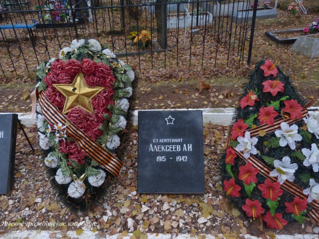 - захоронение и его местоположение;- останки усопших;- текст мемориальной надписи: «СТ. ЛЕЙТЕНАНТАЛЕКСЕЕВ А.И.1915-1942»