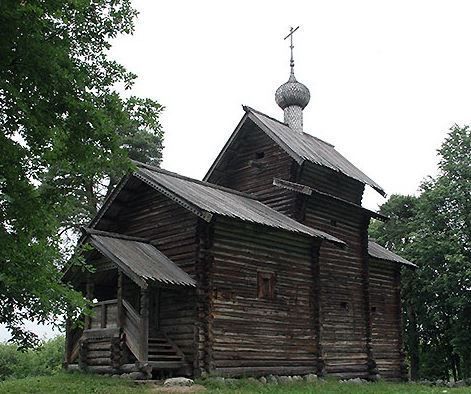 Расположение здания:- композиционная роль в структуре музея народного деревянного зодчества «Витославлицы» и окружающем ландшафте.- местоположение по Генеральному плану музея народного деревянного зодчества «Витославлицы».Здание в целом:- материал – дерево (сосна, ель, осина), признанный пригодным для эксплуатации, в том числе, приобретенный в результате достоверной реставрации.- конфигурация плана здания по внешнему контуру и расположение внутренних стен. Здание относится к т. н. «клетским» храмам. Состоит из трех частей поставленных по одной оси в направлении восток-запад.: алтарь, кафоликон (помещение для молящихся), трапезная. Все части в плане квадратные, но различные по размерам, увеличиваясь от алтаря к трапезной. Все части конструктивно связаны между собой.- конфигурация по внешнему контуру плана двухвсходного крыльца, расположенного с западной стороны трапезной.- габариты и объемно-конструктивное решение церкви, состоящей из разновеликих частей, составляющих ступенчатую композицию. Центральный сруб кафоликона выше остальных частей, имеет промежуточные кровли-полицы и двухскатную крышу, увенчанную главой. Алтарь и трапезная также перекрыты двухскатными крышами.- формы, уклоны, типы крыш и кровель. - архитектурное решение фасадов. Расположение, количество, характер дверных и оконных проемов.- декоративное убранство фасадов и интерьеров.- конструктивные и типологические особенности срубов, каркасных конструкций, элементов и узлов, обработка поверхности древесины.Фундаменты: - система фундаментов - столбчатые буто-бетонные под углами и в промежутках между ними, ленточная «забирка» из валунов между фундаментами, изоляция из бересты. Конструкция, расположение, материал, характер.Стены: - рубленые стены из круглых бревен; бревен, протесанных с внутренней стороны «в лас» (в пределах эксплуатационного этажа). Конструкция, расположение, параметры, характер обработки поверхности.- повалы в верхних частях продольных стен алтаря, трапезной, повалы центрального сруба в верхних частях и под промежуточными крышами – «полицами». Конструкция, расположение, параметры, характер обработки поверхности.- угловые соединения срубов «в обло». Характер обработки, размеры.- припазовка бревен между собой по длине. Характер обработки, размеры.- подтески на бревнах к дверным и оконным косякам (колодам). Характер обработки, размеры.- следы на бревнах - гнезда, пазы, протески и пр. - от прежде существовавших конструкций и форм. Расположение, характер обработки поверхности, размеры.Перекрытия:- перекрытия по бревенчатым балкам в уровне пола. Конструктивная схема, расположение, соединение элементов, характер обработки поверхности.- полы из плах. Расположение, сечения, соединение элементов, характер обработки поверхности.- потолки из плах по брусьям во всех частях. Конструктивная схема, расположение, соединение элементов, характер обработки поверхности.Крыши:- самцово-слеговая конструкция всех крыш. Конструктивная схема, расположение, соединение элементов, характер обработки поверхности.- промежуточная крыша – «полица» на северной и южной стенах основного объема. Конструктивная схема, расположение, соединение элементов, характер обработки поверхности.- кровли. Тип кровли (тесовый с резными зубцами), конструкция (два слоя дороженного те