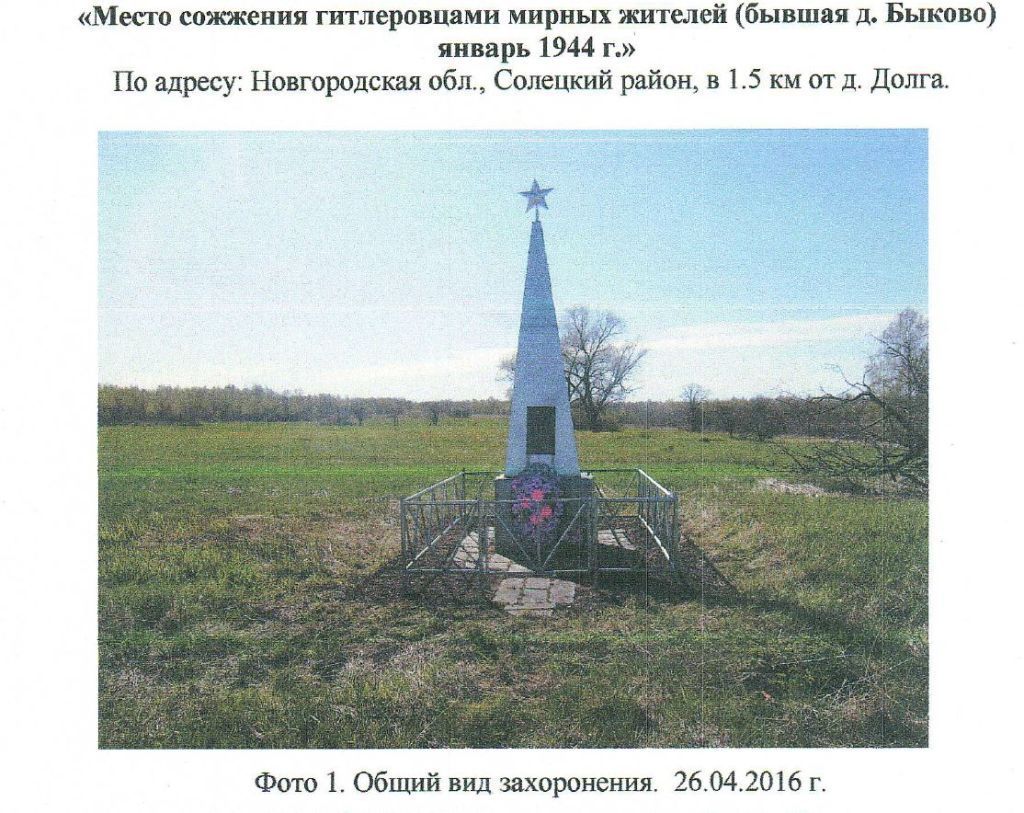 Место сожжения гитлеровцами мирных жителей (бывшая д. Быково)