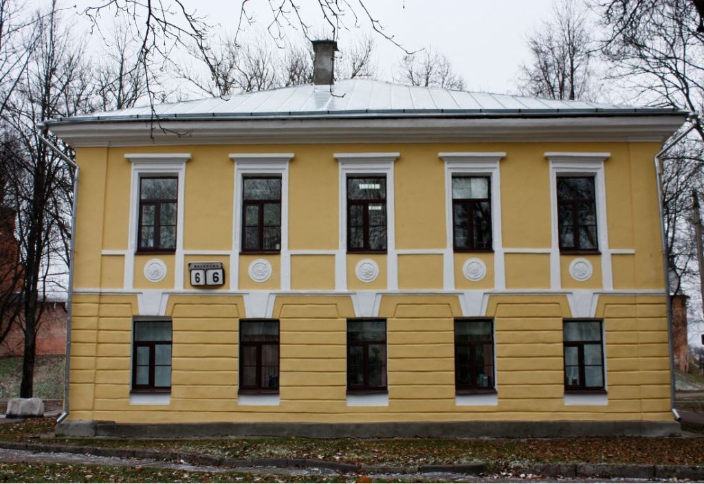 Наименование, описание предмета охраны. А. Градостроительная охранаРасположение здания в структуре исторической застройки XIX – начала ХХ вв. центральной части Софийской стороны Новгорода (к юго-западу от Новгородского кремля).Б. Архитектурная охранаЗдание в целом:- Общие габариты, объемно-пространственная композиция. - Композиция и архитектурно-художественное оформление фасадов. Двухэтажное с подвалом, квадратное в плане здание. Фасады решены в стиле позднего классицизма (безордерный вариант). Средняя часть восточного фасада выделена небольшим ризалитом в одну ось проемов.- Первоначальный материал (красный керамический кирпич), техника кладки.- Первоначальная отделка фасадов (известковая штукатурка, побелка).- Крыша стропильная вальмовая. Форма, уклон, конструкция.Северный фасад.На три оси прямоугольных окон. Окна первого этажа с массивными 3-х частными замками и прямоугольной подоконной нишей. Верхние окна обрамлены профилированными рамочными наличниками, опирающимися на своеобразные лопатки. Под окнами второго этажа размещены круглые профилированные щиты, обработанные «под шубу». Нижний этаж обработан параллельным рустом. Узкий офилированный междуэтажный карниз и тяга в виде полочки в основании верхних окон. Слегка выступающий цоколь, венчающий профилированный карниз большого выноса.Западный (лицевой) фасад.На пять осей прямоугольных окон. Окна первого этажа с массивными 3-х частными замками и прямоугольной подоконной нишей. Верхние окна обрамлены профилированными рамочными наличниками, переходящими в прямой сандрик; в нижней части наличники опираются на своеобразные лопатки. Под окнами второго этажа размещены круглые профилированные щиты, обработанные «под шубу». Углы фасада закреплены плоскими широкими лопатками. Нижний этаж обработан параллельным рустом. Узкий профилированный междуэтажный карниз и тяга в виде полочки в основании верхних окон. Слегка выступающий цоколь, венчающий профилированный карниз большого выноса.Южный фасад.На три оси прямоугольных окон. Окна первого этажа с массивными 3-х частными замками и прямоугольной подоконной нишей. Верхние окна обрамлены профилированными рамочными наличниками, опирающимися на своеобразные лопатки. Под окнами второго этажа размещены круглые профилированные щиты, обработанные «под шубу». Нижний этаж обработан параллельным рустом. Узкий профилированный междуэтажный карниз и тяга в виде полочки в основании верхних окон. Слегка выступающий цоколь, венчающий профилированный карниз большого выноса.Восточный фасад.На три оси прямоугольных проемов, по центральной оси расположен ризалит с дверным проемом на первом этаже и окном на втором этаже. Дверь обрамлена пилястровым портиком с прямым завершением. Окна первого этажа с массивными 3-х частными замками и прямоугольной подоконной нишей. Верхние окна обрамлены профилированными рамочными наличниками, опирающимися на своеобразные лопатки. Под окнами второго этажа размещены круглые профилированные щиты, обработанные «под шубу». Нижний этаж обработан параллельным рустом. Узкий профилированный междуэтажный карниз и тяга в виде полочки в основании верхних окон. Слегка выступающий цоколь, венчающий профилированный карниз большого выноса.Для всех фасадов.- Расположение, конфигурация, характер оформле