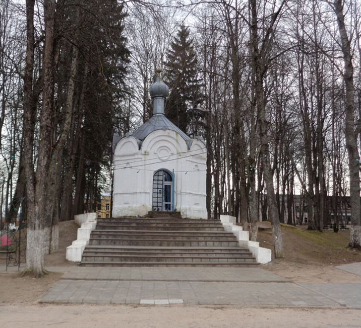 Градостроительная охрана Расположение в центре города на площади при входе в городской парк.Архитектурная охранаЗдание в целом: - материал строительства – кирпич;- габариты и объёмно – пространственная композиция: восьмигранное в плане компактное здание, приподнятое на цоколе, покрытое восьмигранной пирамидальной кровлей с главкой; - количество, расположение первоначальных дверного и оконных проёмов; - декоративное убранство фасадов;- форма и высота крыши.Западный фасад: - грани часовни;- дверной проем прямоугольной формы с полуциркульным завершением;- арочный портал в центре;- закомара с выпуклым профилированным архивольтом и круглым декоративным окном в центре;- полукруглые кокошники на боковых гранях;- узкие пилястры на углах граней;- фигурные нишки в средней части фасада;- квадратные филенки в нижнем поясе фасада;- горизонтальные тяги на боковых гранях фасада.Восточный фасад: - грани часовни;- декоративная ниша прямоугольной формы с полуциркульным завершением в центре фасада;- арочный портал в центре;- закомара с выпуклым профилированным архивольтом и круглым декоративным окном в центре;- полукруглые кокошники на боковых гранях;- узкие пилястры на углах граней;- фигурные нишки в средней части фасада;- квадратные филенки в нижнем поясе фасада;- горизонтальные тяги на гранях фасада.Южный фасад: - грани часовни;- оконный проем прямоугольной формы с полуциркульным завершением и подоконной полочкой в центре фасада;- арочный портал в центре;- закомара с выпуклым профилированным архивольтом и круглым декоративным окном в центре;- полукруглые кокошники на боковых гранях;- узкие пилястры на углах граней;- фигурные нишки в средней части фасада;- квадратные филенки в нижнем поясе фасада;- горизонтальные тяги на гранях фасада.Северный: - грани часовни;- оконный проем прямоугольной формы с полуциркульным завершением и подоконной полочкой в центре фасада;- арочный портал в центре;- закомара с выпуклым профилированным архивольтом и круглым декоративным окном в центре;- полукруглые кокошники на боковых гранях;- узкие пилястры на углах граней;- фигурные нишки в средней части фасада;- квадратные филенки в нижнем поясе фасада;- горизонтальные тяги на гранях фасада. Интерьер: - пространственно – планировочная структура в границах капитальных стен;- обрамление широких граней пилястрами, плоскость которых расчленена филенками;- округленные очертания угловых граней;- сложный свод с тягами, капителями пилястр;- тянутые профилированные обрамления всех проемов.