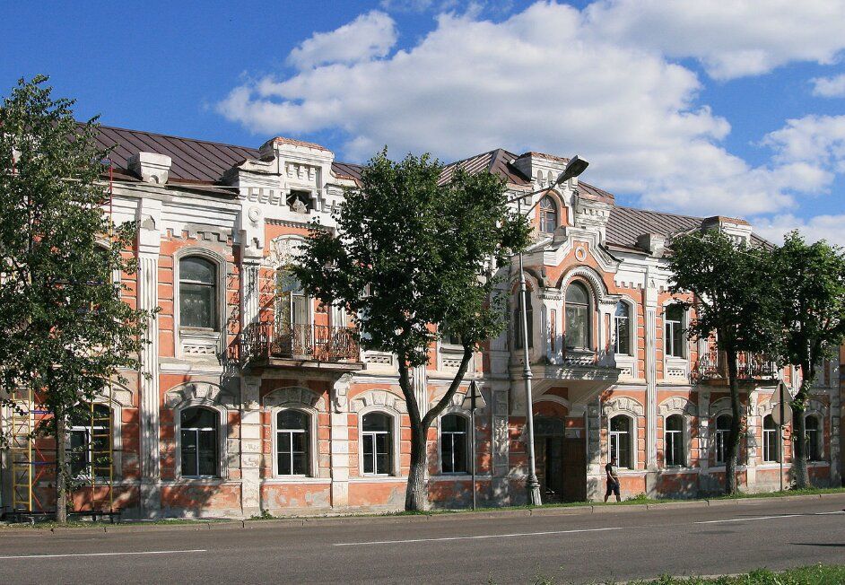 Расположение здания на Торговой стороне города, в ее юго-восточной части. Дом стоит на красной линии улицы Б. Московская и включен в сплошную застройку.Архитектурная охрана: существующие габариты здания - прямоугольное в плане, вытянутое по оси север-юг, два основных этажа, мансардный этаж. Силуэт, конструкция и ориентация кровли. Количество проемов, размещение, форма, размеры и декор. Стилистика и декор фасадов. Подлинная кирпичная кладка от фундаментов до кровли. Планировка в пределах капитальных стен.Протяженный фасад в 11 осей проемов, с прямоугольным эркером над ним и мезонином со ступенчатым завершением, ось каждой половины фасада подчеркнута балконом, рустованным архивольтом над балконной дверью и ступенчатым мезонином. Фасады решены в духе эклектики.Проемы имеют лучковую перемычку, окна боковых мезонинов имеют редкую крестообразную форму. Верхние проемы обрамлены профилированными наличниками - рамками и отмечены подоконной прямоугольной филенкой с зигзагообразным декором (стилизованный бегунец), нижние окна обрамлены заглубленным архивольтом, обработанным под шубу. Декор эркера: филенчатые лопатки со стесанными углами, профилированные импосты и с дентикулами, надоконная круглая филенка, развитый профиль основания и сложного по форме завершения объема. Ажурная литая решетка балконов. Фасад завершен широким плоским антаблементом. Мезонины обработаны нишами разной формы, круглыми филенками, зубчатым фризом, карнизами. Над карнизом 6 массивных квадратных тумб, соответствующих лопаткам. Дворовые фасады: этажы отделены карнизом, все окна с лучковой перемычкой, антаблемент включает архитрав (полочка), гладкий фриз и карниз разной величины выноса. Проход между южным торцом здания и соседним домом оформлен как арка с лучковой перемычкой и ступенчатым завершением. Интерьеры - капитальные стены, продольные и поперечные, кирпичные столбы.