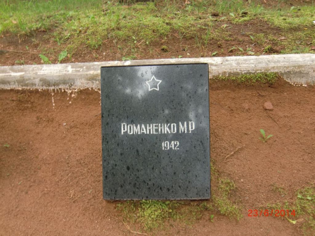 -захоронение и его местоположение;-останки усопшего;-текст мемориальной надписи:«РОМАНЕНКО М.Р.1944».