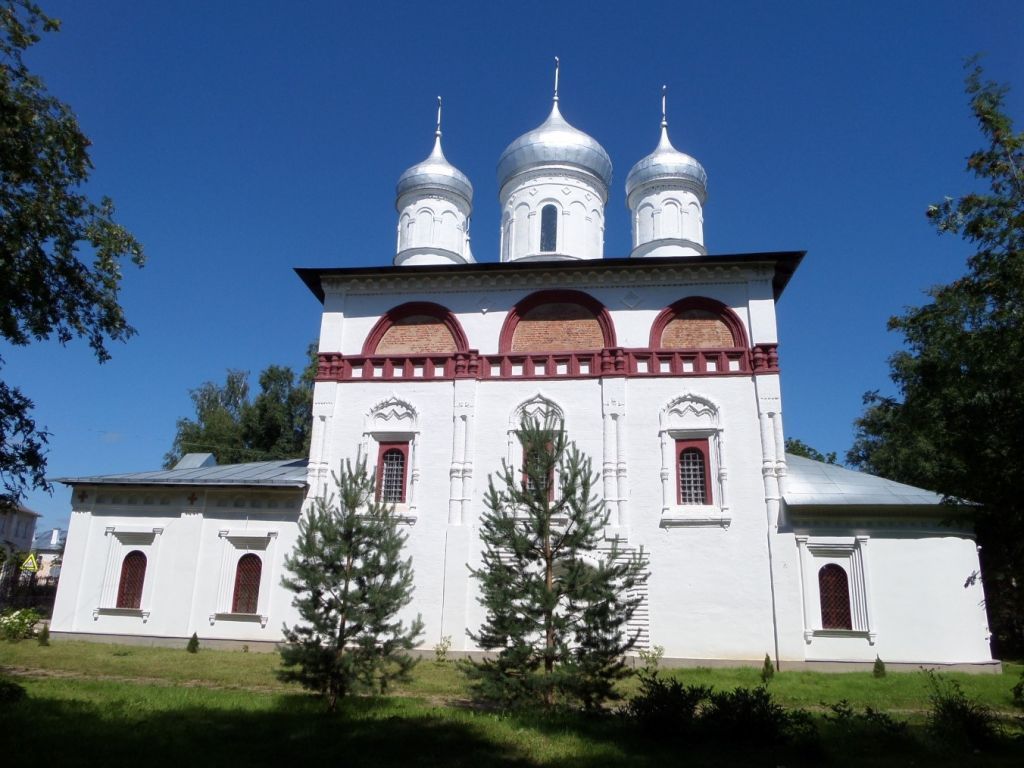 А. Градостроительная охрана. Расположение здания:Памятник расположен в центральной части правобережной стороны города, ориентирована западным фасадом на улицу Тимура Фрунзе (ранее – Троицкая). Обзор от перекрёстка улиц Тимура Фрунзе и Карла Маркса. Б. Архитектурная охранаЗдание в целом:- габариты, объемно-пространственная композиция, силуэт и форма кровли - пятиглавый с вальмовым покрытием четырёхстолпный, трёхнефный, одноуровневый, квадратный в плане, с тремя пониженными апсидами, с примыкающим к западному фасаду притвором (в ширину церкви); - валунные ленточные фундаменты;- стены каменные – красный кирпич на жирном известковом растворе;- количество и размещение проемов, их форма, характер расстекловки; - декор фасадов;- выявленные остатки архитектурных объёмов более ранних строительных периодов.Завершения:- вальмовая форма, конструкция и материал кровли:- стропильная система, крытая металлом, с металлическими водомётами и большим выносом;- расположение, материал, конструкция, проёмы и декор центрального светового барабана:на подпружных арках и парусах, с опиранием на четыре столба;- четыре высоких оконных проема (ориентация север, юг, запад, восток), с криволинейной перемычкой и четвертью, с небольшим раструбом внутренних откосов, фасадная часть в западающей рамке повторяющей форму проёма; - карниз с небольшим выступом из двух уступов над фризом декорированным выступающим бегунцом, под ним ряд маленьких круглых нишек;- луковичная форма главы, крытая железом, с восьмиконечным крестом простой формы;- расположение, материал, конструкция, декор и проёмы четырёх глухих малых барабанов имеющих по четыре высоких ниши, в западающей рамке с небольшим заглублением (на фасадной части), вписанных в аркатурный пояс на полуколонках, опирающихся на поясок;- карниз с небольшим выступом из трёх уступов над фризом декорированным выступающим бегунцом, под ним ряд маленьких круглых нишек размещённых над полуколонками;- луковичная форма глав, крытые железом, с шестиконечными крестами.Фасады в целом:- Материал, тип конструкции и отделки несущих стен: каменные – красный кирпич на жирном известковом растворе, побеленные по обмазке;- трехчастное членение фасадов основного объёма лопатками с раскреповкой, декорированными парными «резными» столбиками в уровне проёмов второго яруса;- закомары с остатками росписи оформленные многоуступчатым профилированным наличником;- карниз из ряда квадратных нишек с профилированными уступами, чередующимися декоративными парными столбиками над лопатками отделяющие закомары от плоскости стен;- оконные проёмы второго яруса основного объёма, оформленные наличниками с колонками по бокам и наверху — кокошниками с килевидным завершением;- в карнизной части основного объёма, выступающий в уровень лопаток декоративный пояс, из арочных нишек с расположенным под ними поребриком;- членение фасадовзападного притвора: трёхчастное и двухчастное – северного и южного фасадов гладкими лопатками, с вписанными в прясла стен по одному проёму;Западный фасад:- три оконных проема основного объёма, расположенные в каждой из третей второго уровня (с коробовой перемычкой, с многоуступчатым раструбом, оформленные наличниками с полуколонками на развитом профиле подоконника украшенные в средней части бусинами, сверху — 
