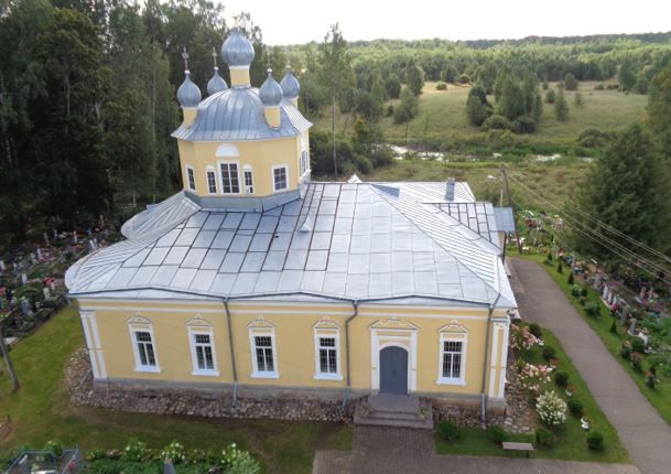 Градостроительная охранаМестоположение объекта:Расположение здания в ансамбле Леохновского монастыря напротив трехъярусной колокольни XIX в., с северо-восточной, юго-восточной, юго-западной сторон церковь окружена кирпичной оградой XIX в., в пределах которой находится кладбище. Архитектурная охранаЗдание в целом:Общие габариты здания и его планировка в пределах капитальных стен.Два разновременных объема - столп XVIII в. и его обстройка кон. XIX в.Внутреннее пространство из трех нефов. Форма кровли основного объема - вальмовая. Архитектурный декор.Первоначальные проемы, их количество, расположение, габариты.Входы в церковь – в западной трети северного фасада и с западной стороны в портике. Два крыльца на три схода.Материал строительства и отделки стен (кирпич, окраска, штукатурка).Первоначальная кирпичная кладка стен, арок, перемычек и декора.Цоколь, выявленный крупными валунами. Пятиглавие над церковью с луковичными завершениями.Венчающие карнизы шей главок и барабана.Стилистика фасадов – эклектика с элементами нарышкинского барокко и провинциального классицизма. Барабан:Купол барабана – сомкнутый восьмискатный с изломом.Барабан, представляющий собой восьмерик.Диагональные грани барабана – заглубленные.Световые проемы барабана прямоугольной формы.Столярные заполнения с многочастной расстекловкой.На четырех диагональных заглубленных гранях окна пониженные, с южной, западной и северной сторон окна строенные (центральное высокое, боковые уже и меньше). Строенные ниши с восточной стороны.Полукруглые ниши над центральными окнами и нишами (центральные большие ниши украшены профильным архивольтом).Профильное рамочное обрамление окон больших центральных и на диагональных гранях.Западный фасад:Антаблемент, состоящий из профилированной тяги, гладкого фриза, профилированного карниза.Центральная часть, выявленная ризалитом, образующим портик, фланкированная строенными пилястрами.Полуфронтон портика. Венчающий карниз портика и карниз с разрывом с дентикулами.Усиление углов фасадов стилизованными пилястрами.Пилястры, сильно выступающие из плоскости стены, посередине разделенные поясками-разрывами, а по вертикали подчеркнутые длинными нишами со стилизованными раздвоенными капителями.Центральный проем – дверной с лучковой перемычкой. Рамочное обрамление с архивольтом центрального проема. Рама центрального дверного проема, оформленная пилястрами с поясками-разрывами, над которыми расположены архитрав, фриз и карниз сандрика, увенчанного высоким трапециевидным фигурным фронтоном с разрывами и килевидным элементом.Ромбовидная ниша над сандриком центрального входного проема.Двери деревянные, филенчатые, двустворчатые, в деревянной коробке.Шесть оконных проемов – два в портике и по два в северном и южном прясле.Оконные проемы северного и южного прясел прямоугольной формы, со сложными наличниками с импостами и поясками-разрывами посередине.Оконные проемы портика, расположенные по обе стороны от дверного проема, прямоугольной формы.Подоконные пояски и сандрики с фигурными трапециевидными фронтонами с разрывами и килевидными элементами.Восточный фасад:Архитектурное решение: симметрия относительно центральной оси.Антаблемент, состоящий из профилированной тяги, гладкого фриза, профилированного карниза.