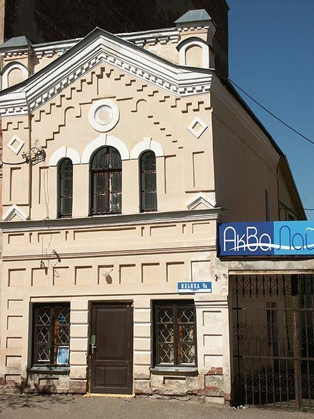 Градостроительная охрана. Местоположение объекта: расположение здания в центральной части Торговой стороны Великого Новгорода на улице Ильина. Здание имеет большое историко-архитектурное значение как объект, формирующий красную линию.Архитектурная охрана. Здание в целом: общие габариты, его планировка в пределах капитальных стен. Стены фасадов, этажность (2 этажа). Форма, уклон и высота кровли. Архитектурный декор. Первоначальные проемы, их количество и расположение. Материал строительства и отделки стен (кирпич, окраска, штукатурка). Первоначальная кирпичная кладка стен из красного кирпича, перемычек и декора. Проездные и проходные ворота с квадратными филенками на опорном столбе.Южный фасад: симметричное расположение композиции фасада относительно центральной оси. Стены с треугольным щипцом, выступающим в своей верхней части за поле прямоугольного аттика, который венчает фасад. Профилированный карниз треугольного щипца в несколько уступов с поясом сухариков. Венчающий карниз аттика с зубцами меньшей и большей величины. Крупная горизонтальная междуэтажная тяга в виде полки с мелкой профилировкой в нижней части. Расположение оконных проемов. Декор плоскости стены второго этажа в \"кирпичном стиле\".Первый этаж: широкий пояс квадратных филенок над проемами, обработка угловых лопаток квадратными филенками, неглубокая ниша, в которой устроены два оконных и один дверной проем, оконные проемы с прямыми перемычками, столярные заполнения окон шестичастные, обработка простенков между проемами ленточным рустом.Второй этаж: три оконных проема, крайние из которых узкие, с полуциркульными перемычками, столярные заполнения окон у центрального оконного проема с шестичастной расстекловкой, с глухой фрамугой, у крайних - с трехчастной, крупная горизонтальная тяга в виде полки с мелкой профилировкой в нижней части под оконными проемами, оформление пояса между подоконной и междуэтажной тягой горизонтальными филенками, оформление оконных проемов стилизованными архивольтами с клинчатыми замками, декор поверхности стены:филёнки, ромбы, зубцы. Круглый медальон из штукатурки над центральным оконным проемом. Вертикальная филёнка над медальоном. Пилястры на углах здания. Вертикальные филёнки на пилястрах. Вертикальные филенки между крайними окнами и пилястрами.Восточный фасад: венчающий уступчатый карниз основного объема. Один дверной проем, совмещенный с оконным на 1-ом этаже. Столярное заполнение оконного проема с 6-тичастной расстекловкой. Оконный проем на 2-ом этаже основного здания с лучковой перемычкой, столярное заполнение с 6-тичастной расстекловкой, с глухой фрамугой.Интерьер: первоначальные оконные и дверные проемы.