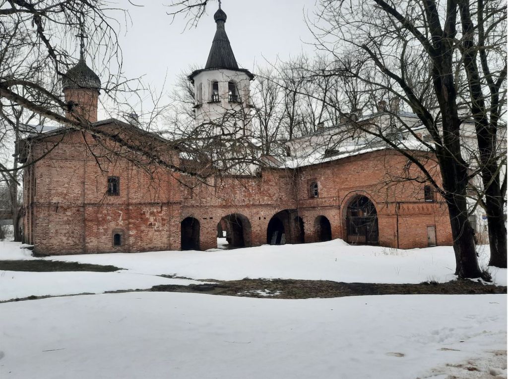 ЦЕРКОВЬ БЛАГОВЕЩЕНИЯ ПРЕСВЯТОЙ БОГОРОДИЦЫ НА ТОРГУ, 1553 г.А. Градостроительная охранаРасположение в южной части Торговой стороны, («на Торгу», «на Виткове улице»), к юго-востоку от Ярославова Дворища, на пересечении улиц Большой Московской и Нутной, в комплексе с церковью Михаила Архангела на Торгу.Б. Архитектурная охрана. Здание в целом: кирпично-каменная культовая постройка – вытянутая по оси запад-восток с кубическим центральным объёмом с полукруглой пониженной апсидой, крестовокупольная, одноглавая, бесстолпная с подцерковьем, с восьмискатным покрытием над храмом, двухскатным над трапезной и галереей, с шатром над колокольней;материал строительства, габариты и объёмно–пространственная композиция, планировка, силуэт, форма главы; конструктивное решение;количество, форма, расположение дверных и оконных проёмов; декоративное убранство фасадов (в том числе барабана) и интерьеров. Фасады в целом:- материал – камень, кирпич, признанный пригодным для эксплуатации;- стены – кирпично-каменные – конструкция, расположение, параметры;- форма, материал, конструктивное и декоративное решение:- трёхчастное деление фасадов храма лопатками на прясла с повышенной центральной третью с килевидным завершением, полуарочным завершением боковых прясел южного и северного фасадов и двухлопастным восточного и западного – лопасти арок закомар двухуступчатые;- пояски по всем фасадам храма, в уровне пят закомар, из трёх полочек, между которыми проходит пояс из пятигранных двухуступчатых ниш;- межэтажный разделительный пояс из трёх полочек, проходящий по фасадам объёмов храма и трапезной;- трёхчастное деление фасадов трапезной лопатками, доходящими до абриса стен;- в завершении фасадов трапезной, фриз с поясом двухуступчатых килевидных ниш, заключённых между двумя поясами из трёх полочек;- раскреповка углов колокольни лопатками, переходящими в килевидные трёхуступчатые завершения над проёмами яруса звона; декоративный поясок из трёх полочек, проходящий по всем фасадам колокольни, между ярусами; 8 арочных проёмов на ярусе звона колокольни;- материал покрытия колокольни – дерево, главки с шейкой (лемех), шатра, окрытия подоконников проёмов яруса звона, углов четверика;- форма кровли апсиды – полусферическая, ее уклоны, конструкция и материал.Южный фасад: Объём храма -- один маленький оконный проём в первом ярусе центрального прясла, два большего размера во втором ярусе центрального и восточного прясла, в нишах с «лобиками» с коробовыми перемычками; Объём трапезной – - два оконных проёма с арочными перемычками, в нишах с коробовыми перемычками с «лобиками», по обе стороны от примыкающей галереи, во втором ярусе;- дверной проём с арочный перемычкой, с пониженным центром, в прямоугольной нише с полочкой, к западу от примыкающей галереи;- дверной проём в прямоугольной широкой нише с полочкой, к востоку от галереи.Восточный фасад: Объём храма – - оконный проём с арочной перемычкой, расположенный на втором ярусе северного прясла;Апсида – - трёхчастное деление фасада на прясла лопатками с килевидным завершением, двухуступчатыми;- два оконных проёма с арочной, с пониженным центром, перемычкой, в нишах с коробовыми перемычками, на втором ярусе в южном и северном пряслах;Объём галереи –- арочные проёмы открытой галереи первого яруса;- два оконных п