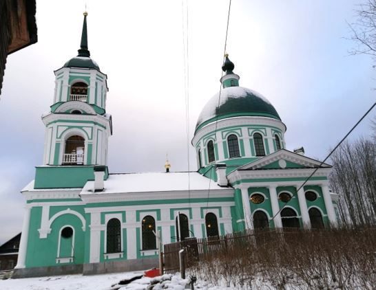 1. Градостроительные характеристики.Местоположение. При въезде в село Сопины со стороны Боровичей. На небольшом возвышении, в комплексе старого погоста, к северу от деревянной церкви Рождества Богородицы 1762 г. Композиционная значимость. Архитектурная объемно-планировочная доминанта в структуре сельского поселения. Габариты, силуэт. Культовое здание в плане в виде креста. Силуэт сформирован разно-габаритными объемами: высокий основным объем с широким барабаном, увенчанный куполом с «фонариком» и главкой луковичной формы на конусообразном основании; пониженный – алтарь с полуконическим завершением и нефы с портиками - образующие боковые ветви креста; трапезная; пристроенная трёхъярусная колокольня с портиком и широким ступенчатым крыльцом. Общая длина 35м.; ширина основного объема – 19,4м., трапезной -15.2м.; высота основного объема с крестом – 29,5м., колокольни – 34,8м. Секторы и направления видовых раскрытий, визуальные связи памятника. Визуальное раскрытие с южной стороны, от поворота дороги из г. Боровичи к д. Сопины. Визуально-композиционные связи с улицами деревни, идущими в западном и северо-западном направлении от погоста. 2. Архитектурные характеристики. Объемно-пространственная композиция. Композиция основных объемов: центральная храмовая часть типа «ротонда на восьмерике» с пониженными боковыми нефами и полуциркульной в плане апсидой; двухстолпная прямоугольная в плане трапезная; пристроенная трёхъярусная колокольня. Северный, южный и западный фасад украшен четырехколонными портиками тосканского ордера, восточный увенчан треугольным фронтоном. Центральное ядро креста представляет восьмерик с укороченными диагональными гранями. Со стороны интерьера диагональные грани восьмерика украшены парными колоннами, поддерживающими антаблемент в основании парусов и опоясывающий стены восьмерика и его проемов с арочным завершением. Широкий горизонтальный декоративный пояс устроен в основании барабана и в основании купола. Внутренние грани барабана и купола с плавным сопряжением граней восьмерика. Пониженные боковые нефы перекрыты коробовыми сводами, апсида -конхой. Ярусная колокольня состоит из двух разновеликих восьмериков, установленных на четверике.Кровля. Конфигурация:- криволинейная крыша апсиды;- двускатная крыша трапезной и портиков;- купольная крыша барабана;- материал покрытия – металл (листовой не профилированный).Купола. Конфигурация и расположение:- купольная крыша барабана;- материал покрытия – металл (листовой не профилированный)- луковичной главки на «фонарике» центрального купола.Фрагменты живописи в интерьере.Композиция и архитектурно-художественное оформление фасадовОконные проемы и их оформлениеМестоположение, габариты, композиция: - оконные проемы трапезной, апсиды, первого яруса колокольни на северном и южном фасаде и барабана основного объема - с арочными перемычками, в неглубоких нишах прямоугольной формы, с развитым двух уступчатым подоконником на кронштейнах и подоконной прямоугольной филенкой;- ложные проемы на западном фасаде трапезной и с восточной стороны нефов оформлены подобным образом, последние украшены сандриками треугольной формы;- оконные проемы боковых нефов устроены в двух уровнях – нижние проемы высокие с арочной перемычкой, верхние - эллипсовидной формы, все