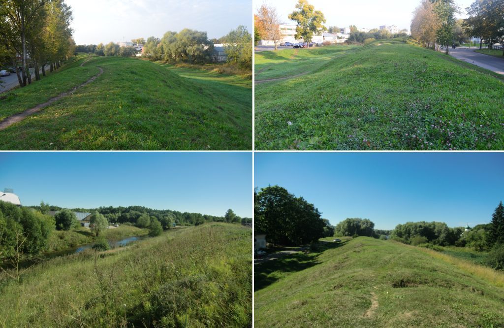 - Местоположение. С юга на север (Торговая сторона), вдоль ул. Панкратова от Посольской ул., пересекает ул. Федоровский ручей, Щитную ул., Андреевскую ул., Большую Московскую ул., примыкает к наб. Александра Невского; с юга на север (Софийская сторона), начинается от Троицкая ул., пересекает ул. Каберова-Власьевскую, Прусскую ул., ул. Чудинцева, сквер Воинской Славы, ул. Людогощу, Стратилатовскую ул., Новолучанскую ул., Большую Санкт-Петербургскую ул., ул. Бредова-Звериную, Великую ул. и примыкает к линии левого берега р. Волхов.- Градостроительная охрана: вал и ров Окольного города Софийской и Торговой стороны - уникальный по протяженности и редкий по сохранности памятник древнерусского военно-оборонительного зодчества и археологии. Расположение городского земляного вала и каменной стены (ансамбль) – два полукруга с северной и восточной стороны, опоясывает древнюю часть города, прерываясь руслом реки Волхов. Земляной вал и ров Торговой стороны расположен полукругом с северной и восточной сторон древней части города. С северной стороны от Волхова до ул. Щитная вал и ров проходят внутри современной застройки, остальная часть этой крепостной линии совпадает с современной границей города, протяженностью 3000 м.1.Участок земляного вала в границах улицы Посольская – Знаменский переулок.2.В границах улиц Знаменский переулок – Ильина: южная сторона - в уровне современного рельефа постепенно снижаясь вал, отсутствует (фото № 3), далее с северной стороны к земляному валу примыкает каменная стена конца XIV в., её протяженность составляет - 65,4 м, далее вал имеет продолжение, постепенно снижаясь (фото № 9).3.В границах улиц Ильина – Пушкинская: имеет равномерное продолжение. 4.В границах улиц Пушкинская – Рогатица: имеет равномерное продолжение. 5.В границах улиц Рогатица – Федоровский Ручей: имеет равномерное продолжение, за исключением участка вала напротив дома № 29 по ул. Панкратова. 6.В границах улиц Федоровский Ручей – Герасименко-Маницина: в уровне современного рельефа участок вала отсутствует (широкая автотрасса в сторону Москвы в продолжение, проспекта им. Гагарина, далее вал имеет равномерное продолжение.7.В границах улиц Герасименко-Маницина – Щитная: в уровне современного рельефа участок вала отсутствует (разделяет широкая грунтовая дорога на юг, в сторону водно-моторного центра), далее земляной вал имеет продолжение. 8.В границах улиц Щитная – Черемнова-Конюхова: имеет равномерное продолжение.9.В границах улиц Черемнова-Конюхова - Молотковская: имеет равномерное продолжение.10.В границах улиц Молотковская – Андреевская: имеет равномерное продолжение. В уровне современного рельефа участок вала отсутствует (разделяет асфальтовая дорога на север, напротив дома № 31/43 по Андреевсой улице.11. В границах улиц Андреевская – Большая Московская: имеет равномерное продолжение до ул. Большая Московская, в уровне современного рельефа участок вала отсутствует (проезжая часть по ул. Большая Московская). В границах улиц Большая Московская – Тимура Фрунзе-Оловянка: вал имеет равномерное продолжение, в уровне современного рельефа участок вала отсутствует (напротив церкви Бориса и Глеба), к набережной Александра Невского завершается, с понижением. Земляной вал и ров Софийской стороны расположен полукругом направление вала с юга на север, местополо