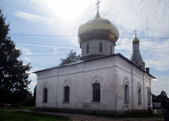 •Градостроительная характеристика•местоположение и градостроительные характеристики: в центральной правобережной части села Мошенское, на холме с крутым западным склоном (склон эскарпирован при планировочных работах по расширению проезда ул. Калинина); композиционное ядро и высотная доминанта в структуре окружающего городского ландшафта; участвует в формировании фронта разреженной застройки восточной стороны главной городской улицы; высотная доминанта в структуре окружающего городского ландшафта, в том числе, панорамное раскрытие здания с дальних расстояний;Архитектурные и конструктивные характеристики здания•объемно-пространственная композиция архитектурного ансамбля вытянутого в плане с востока на запад с осевым расположением разновременных и разновеликих построек: прямоугольной в плане одноглавой одноэтажной церкви с одним западным входом, перекрытой вальмовой кровлей с крупным декоративном восьмигранным световым барабаном, увенчанным главой, представляющей собой композицию из полусферической и луковичной с перетяжкой форм, с запада с пониженным объемом прямоугольного в плане придела, перекрытого на два ската и увенчанная восьмилопастным снопообразным куполом с прямым пирамидальным шпилем трехъярусная колокольня, с квадратным в плане нижним ярусом и двумя верхними ярусами звона, каждый из которых восьмигранный в плане (прямоугольник с усеченными в виде узкой грани наружными углам) и ступенчато уменьшается в объемах от низа к верху (завершение церкви, западный придел и два яруса колокольни утрачены);•стилистика архитектурного ансамбля в вариациях: фасады церкви в романтическом стиле с готическими реминисценциями, главу в завершении и отдельно выстроенную трехъярусную колокольню с барочными мотивами наружной декорации, западный придел эклектичных формах провинциального историзма;•материал капитальных стен церкви, западного придела и двух нижних ярусов колокольни: красный полнотелый керамический кирпич на известково-песчаном растворе; в том числе деревянные конструкции световой главы храма и третьего яруса колокольни со шпилем в завершении;•конструкция, материал, характер кровельных покрытий, в том числе: деревянная стропильная конструкция скатных кровель с окрытием стальными листами из мелкоразмерных картин на стоячий фалец, окрытие шпиля, куполов и главок стальными листами на лежачий фалец по журавцам и сплошному дощатому настилу (исторические кровли и завершения утрачены);•композиция и архитектурно-художественное оформление фасадов основного объема церкви, в том числе местоположение, форма, размер и оформление оконных и дверных проемов:— зеркальный характер композиции относительно центральной оси каждого из фасадов (частично нарушен в связи с пристройкой в конце XIX в. западного придела, и строительством на его месте нового объема, а также с устройством дверного проема в западной оконной оси северного стены);— по периметру стен незначительно выступающий высокий кирпичный, оштукатуренный цоколь и небольшими прямоугольными отверстиями продухов (уточняется в процессе научно-исследовательских работ);— по периметру стен церкви с отдельными участками над каждой лопаткой венчающий развитой кирпичный карниз из многих мелких прямых уступов (разной высоты) с рядом сухарик