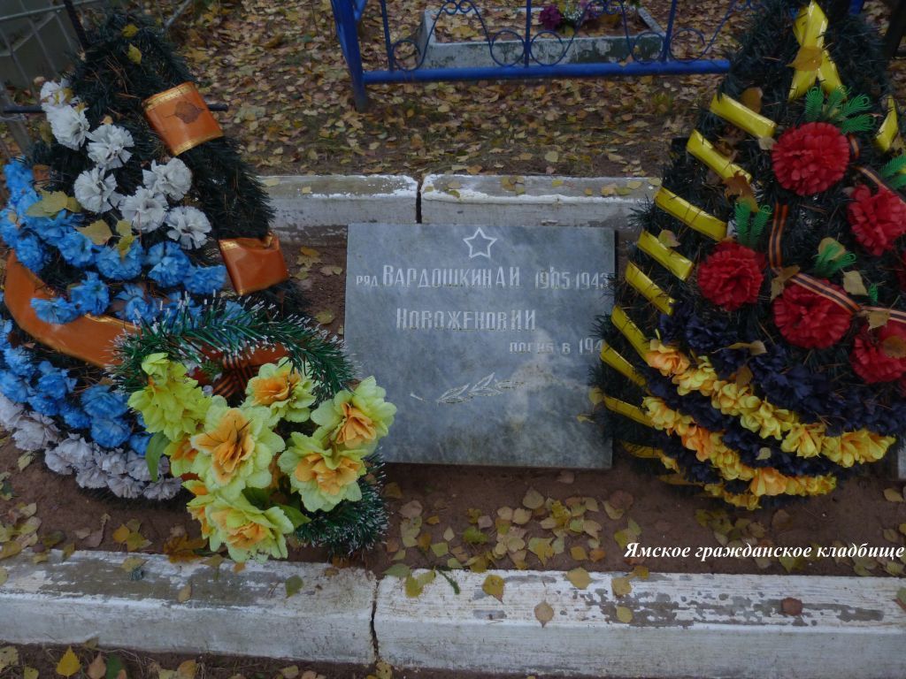- захоронение и его местоположение;- останки усопших;- текст мемориальной надписи: «РЯД. ВАРДАШКИНА А.И.1905-1943»