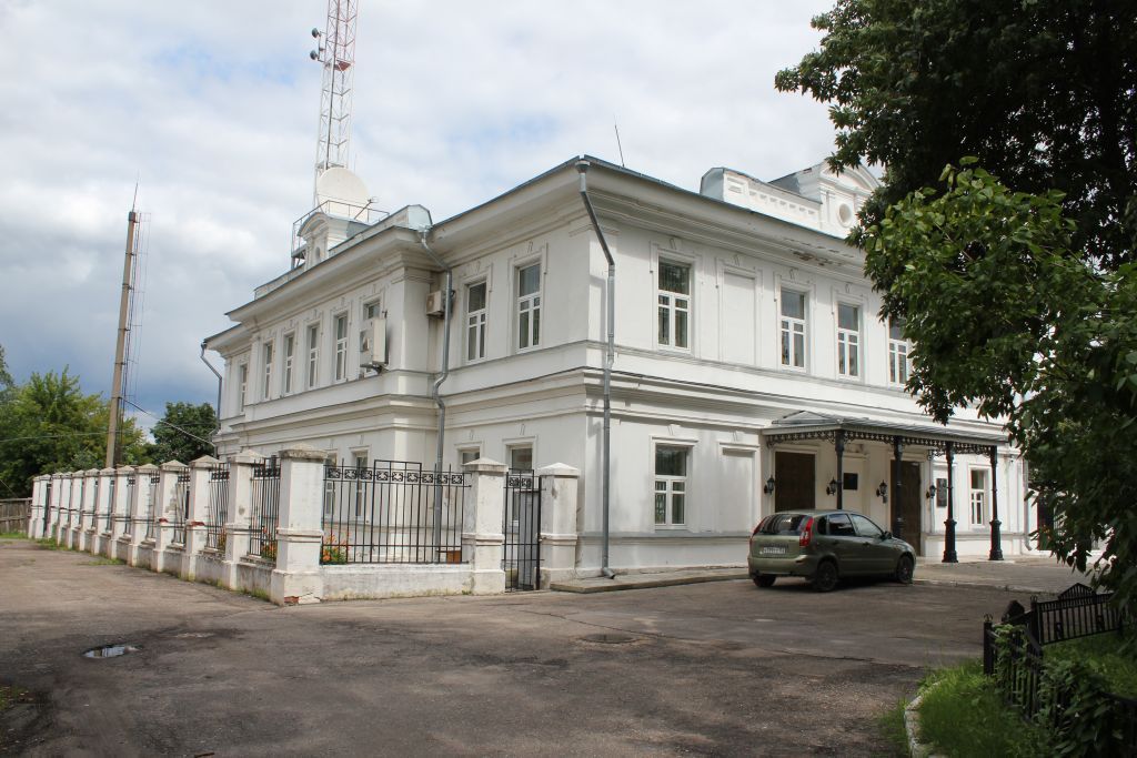 Градостроительные характеристикиМестоположение главного дома усадьбы Грузинских - Стоговых, расположенного с отступом от красных линий переулка Кадушина и улицы Революции, к юго-западу от усадебных флигелей, его роль в пространственно-планировочной структуре ансамбля усадьбы Грузинских - Стоговых. Объёмно - пространственные и планировочные характеристики Объемно-пространственная и планировочная структура, относящаяся к первоначальному периоду строительства: - двухэтажное здание с подвалом, перекрытое чердачной вальмовой крышей, с двумя входами в здание;- конфигурация в плане - прямоугольная в плане конфигурация с ризалитом в центральной части западного фасада;- существующие высотные отметки венчающего и межэтажного карнизов;- высотные отметки по коньку крыши.Конструктивные характеристики Конструкции и материал наружных и внутренних несущих стен – кирпич.Своды Монье в помещениях П1 (подвал), П2 (первый этаж), П3 (второй этаж). Перекрытие подвала, его конструкция и материал: система сводов из цилиндрических и цилиндрических с распалубкой. Крыша, ее форма и габариты:- уклон и конфигурация крыши: вальмовая четырехскатная; - материал и тип покрытия кровли - фальцевая металлическая; - чердачное (холодное) подкровельное пространство.Композиционное и архитектурно-художественное оформление фасадовКомпозиционное решение фасадов:- южный фасад в семь световых осей с угловыми пилястрами, двумя входными проемами по первому этажу, расчлененный по горизонтали междуэтажным карнизом и подоконными тягами, с аттиком;- западный фасад в девять световых осей с пятиосевым ризалитом, с пилястрами, фланкирующими углы и ризалит, расчлененный по горизонтали междуэтажным карнизом и подоконными тягами, с аттиком;- восточный фасад в девять световых осей с пилястрами, разделяющими фасад на три части: центральную пятиосевую часть и боковые двухосевые части, расчлененный по горизонтали междуэтажным карнизом и подоконными тягами, с аттиком;- северный фасад в семь световых осей, фланкированный угловыми пилястрами, расчлененный по горизонтали междуэтажным карнизом и подоконными тягами, с аттиком.Архитектурно-художественное оформление фасадов:- местоположение, форма, габариты и декоративное обрамление оконных проемов, включая заложенные проемы на южном, восточном и северном фасадах:•по первому этажу прямоугольные оконные проемы, обрамленные рамочными наличниками с замковыми камнями;•по второму этажу прямоугольные оконные проемы, обрамленные рамочным наличником с выступами - ушами и замковыми камнями.- горизонтальные членения: профилированный венчающий карниз большого выноса; профилированный междуэтажный карниз; профилированные подоконные тяги по первому и второму этажам; выступающий цоколь.- вертикальные членения: раскрепованные пилястры по первому и второму этажам; - аттики по фасадам, их местоположение, габариты, декоративное обрамление: •центральная часть аттиков с круглым слуховым окном по средней оси, фланкированная пилястрами, завершенная лучковым фронтоном;•боковые части аттиков, представляющие собой прямые пониженные стенки с квадратными филенками, фланкированные тумбами с квадрами бриллиантового руста.Местоположение, форма и габариты входных проемов со стороны южного и восточного фасадов: профилированные обрамлен