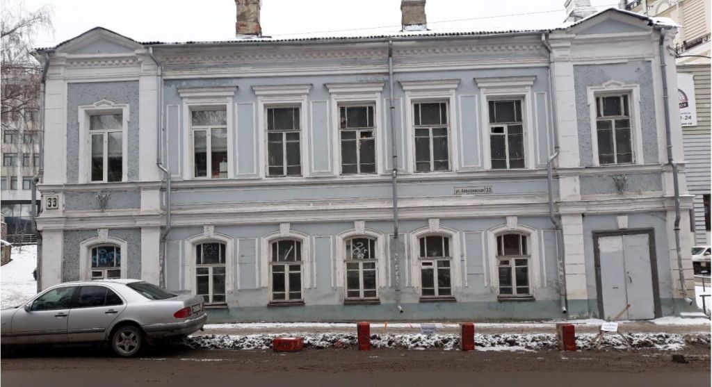 Предмет охраныобъекта культурного наследия регионального значения«Жилой дом», 2-я пол. XIX в.со схемами предмета охраны Градостроительные характеристикиМестоположение и градоформирующее значение объекта, расположенного в пределах исторической территории «Старый Нижний Новгород», в ряду застройки улицы Алексеевской, выходящего главным юго-восточным фасадом на историческую линию застройки улицы.Объемно-пространственные и планировочные характеристики зданияОбъемно-пространственное решение двухэтажного здания, перекрытого многоскатной крышей, включающего в себя объемы двух строительных периодов (1-я пол.XIXв. и 1869 г.):- объем первого этажа прямоугольной конфигурации в плане, относящийся к 1-й пол. XIXв.;- объем второго этажа прямоугольной конфигурации в плане и объем пристрояпо северо-западному фасаду прямоугольной конфигурации в плане, относящиеся к 1869 г. Форма, уклоны, конфигурация: двускатной крыши основного объема, вальмовой крыши объема пристрояпо северо-западному фасаду, двускатных крыш пониженных фронтонов ризалитов.Высотные отметки конька крыш, венчающего антаблемента здания.Конструктивные характеристики Материал, техника кладки и конструкции подлинных наружных и внутренних несущих кирпичных стен из красного керамического кирпича.Материал, техника кладки и конструкции цилиндрического свода лестничного пролета из красного керамического кирпича перекрытия первого этажа.Конструкции, местоположение, материал, габариты парадной лестницы - два лестничных марша по ползучим аркам из керамического кирпича, профилированные деревянные проступи и подступенки, ограждение из чугунного художественного литья с профилированным деревянным поручнем.Покрытие крыши: металлическое с фальцевыми соединениями.Композиционное и архитектурно-художественное оформление фасадовАрхитектурная симметричная трехчастная композиция главного (юго-восточного) фасада, фланкированного слабо раскрепованными ризалитами, завершенными треугольными фронтонами, с размещением главного входа в правом ризалите, в 7 осей света по первому и второму этажам.Архитектурная композиция северо-восточного фасада основного объема - брандмауэрная стена, завершенная треугольным фронтоном; объема пристроясо стороны дворового фасада - в 1 световую ось.Архитектурная асимметричная композиция дворового (северо-западного) фасада основного объема в 5 световых осей по первому этажу (включая заложенные), в 6 световых осей по второму этажу; объема пристроясо стороны дворового фасада - в 1 световую ось по второму этажу (по первому этажу фасад закрыт примыкающим одноэтажным домом № 33/35 по ул. Алексеевской).Архитектурная композиция юго-западного фасада основного объема и объема пристрояв 4 световые оси по первому этажу, в 5 световых осей по второму этажу, с завершением основного объема треугольным фронтоном, с расположением в объеме пристроя входного проема.Местоположение, габариты и форма проемов:- прямоугольная форма оконных проемов с лучковой перемычкой первого этажа (включая заложенные проемы; закладка проемов не относится к предмету охраны);- прямоугольная форма оконных проемов с клинчатой перемычкой второго этажа (включая заложенные проемы; закладка проемов не относится к предмету охраны);- прямоугольная форма парадного дверного проема с клинчатой пе