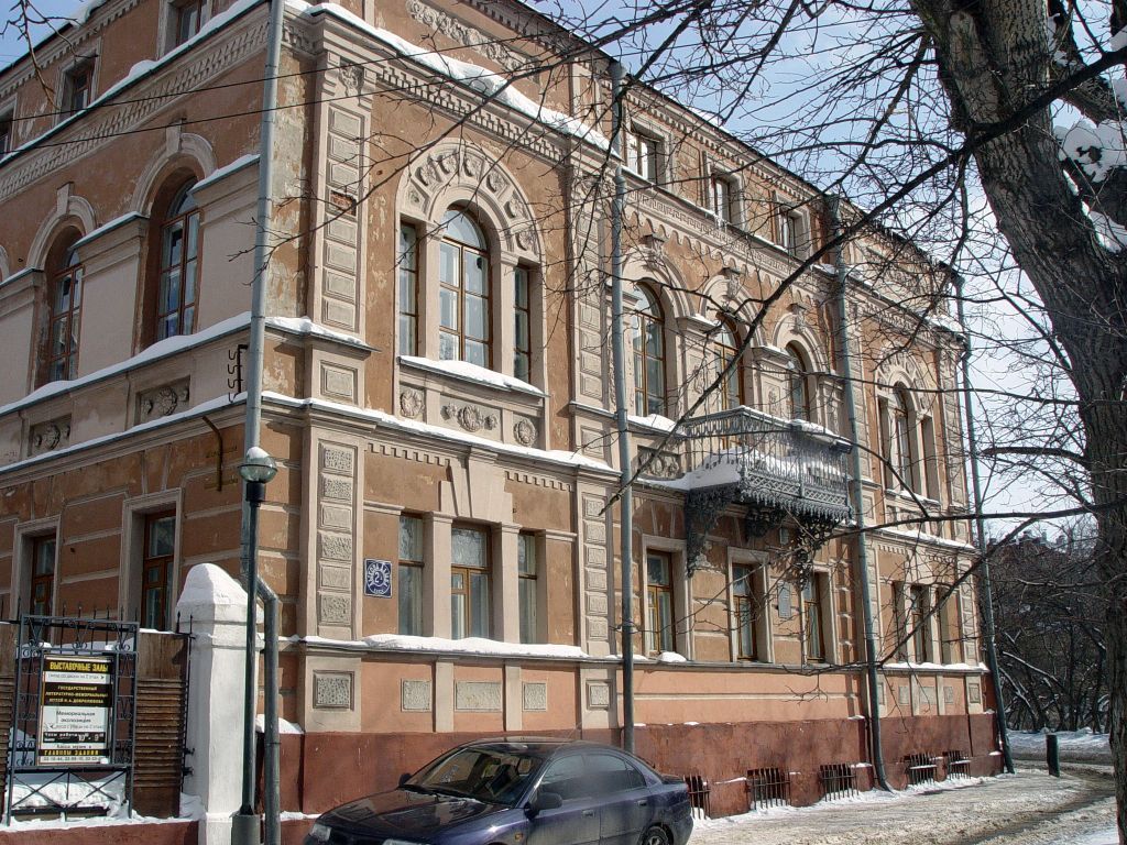 Градостроительные характеристикиМестоположение усадьбы Добролюбовых на бровке Почаинского оврага, и главного дома, расположенного в южной части усадебной территории, формирующего линию застройки набережной Лыковой дамбы вместе с флигелем и оградой; его роль в композиционно-планировочной структуре усадьбы и прилегающей территории. Объемно-пространственные и планировочные характеристики Объемно-пространственная композиция двухэтажного с третьим (антресольным) этажом и подвалом здания 1838-1839 гг., перекрытого вальмовой крышей; прямоугольная конфигурация в плане.Конфигурация, габариты чердачной вальмовой крыши здания; высотные отметки по венчающим карнизам и коньку крыши.Высотные отметки перекрытий подвала, первого и второго этажей здания.Характер ограждения усадьбы: металлическое ограждение на кирпичном цоколе с кирпичными столбами, рисунок металлического ограждения, характерный для 1-ой пол. XIX века в соответствии с первоначальным проектом Г.И.Кизеветтера (существующее ограждение, выполненное в 1970-х гг., не является предметом охраны).Конструктивные характеристики Стены несущие наружные и внутренние 1838-1839 гг., их конструкция, материал (красный керамический кирпич), техника кладки.Материла и характер кровельного покрытия – металлическая с фальцами кровля.Своды кирпичные между подвалом и первым этажом: материал, техника кладки и конструкции.Композиционное и архитектурно-художественное оформление фасадовАрхитектурное решение фасадов здания, выполненное в стиле эклектики с элементами позднего классицизма.Композиция главного (западного) фасада: - симметричная трехчастная с центральной частью в три световые оси и боковыми частями в одну световую ось;- пилястры на всю высоту здания, выделяющие центральную часть в три световые оси- пилястры на всю высоту здания, фланкирующие боковые части, и расположенные с отступом от углов здания;- пять световых осей: три световые оси в центральной части; по одной световой оси в боковых частях (венецианские окна в уровне второго этажа, трехчастные окна в уровне первого этажа);- балкон в уровне второго этажа между крайними оконными проемами центральной части.Композиция бокового (северного) фасада в 5 световых осей оконных проемов по второму и третьему этажам, в 6 световых осей по первому этажу (5 оконных и дверной проем).Композиция бокового (южного) фасада в 5 световых осей (включая заложенные проемы).Композиция дворового (восточного) фасада в 5 световых осей с трехчастными окнами в крайних световых осях.Материал заполнения оконных проемов – дерево.Местоположение, форма и габариты исторических оконных проемов: - прямоугольная форма оконных проемов подвала;- прямоугольная форма оконных проемов первого этажа;- прямоугольная форма оконных проемов трехчастных окон первого этажа;- арочная форма оконных проемов второго этажа западного, южного, северного и восточного (частично заложены) фасадов;- арочная форма центрального оконного проема и прямоугольная форма боковых оконных проемов трехчастных венецианских окон второго этажа западного фасада;- арочная форма центрального и боковых оконных проемов трехчастного венецианского окна второго этажа восточного фасада; - арочная форма центрального и прямоугольная форма боковых оконных проемов трехчастного венецианского окна второго эта