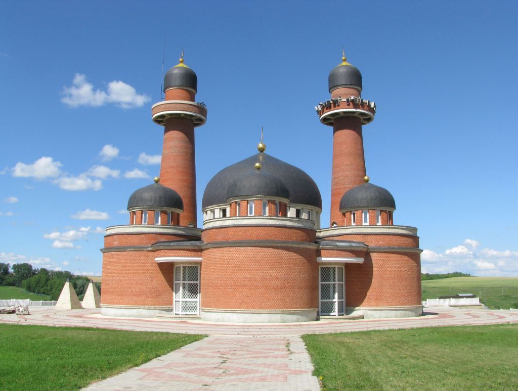 Памятное место расположения утраченных Второй соборной мечети "Абдуллы" и мектебе с воссозданной мечетью "Рашида" и монументом "Йа-Син"