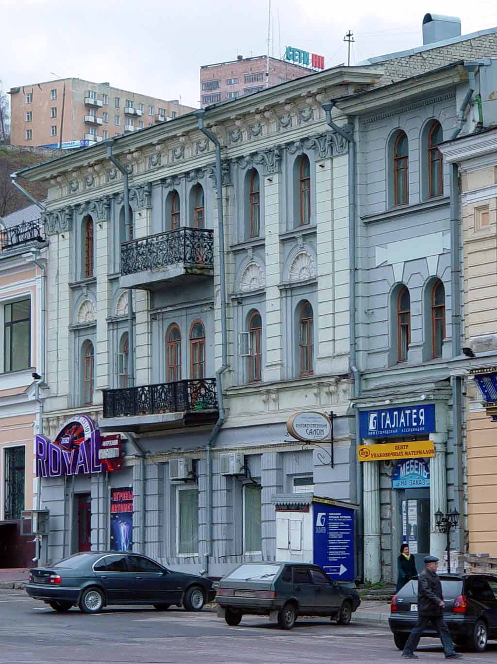 Предмет охраныобъекта культурного наследия регионального значения «Доходный дом Блиновых»Градостроительные характеристикиМестоположение объекта в ряду брандмауэрной застройки на западной стороне площади Маркина (бывшей Софроновской) по красной линии застройки площади.Объемно-пространственные и планировочные характеристикиОбъемно-пространственная композиция трехэтажного с подвалом здания прямоугольной формы в плане с пристроенным пониженным объемом лестничной клетки. Крыша: двускатная над трехэтажным объемом и объемом лестничной клетки, форма и габариты; характер кровельного покрытия: металлическое фальцевое покрытие.Существующие высотные отметки:- высотная отметка венчающего карниза здания +13,6м и +12,8м со стороны главного фасада от уровня входа в лестницу, - высотная отметка карниза +12,6м со стороны двора, - высотная отметка конька крыши +16,9м и +14,4м от уровня входа в лестницу.Конструктивные характеристики Материал и конструкция наружных и внутренних стен 1853г., конца XIX века:- наружные и внутренние стены из керамического полнотелого кирпича;- внутренние дощатые оштукатуренные перегородки.Конструкция и материал перекрытий: - полуциркульные своды над южными помещениями в подвале и помещениями в юго-восточной части первого этажа из керамического полнотелого кирпича; - крестовый свод над юго-западным помещением первого этажа из керамического полнотелого кирпича; - крестовые распалубки в юго-восточном помещении второго этажа из керамического полнотелого кирпича.Конструкции и материал парадной трехмаршевой лестницы и служебной двухмаршевой лестницы конца XIX века из сборных бетонных ступеней с валиком.Композиционное и архитектурно-художественное оформление фасадовКомпозиционное решение восточного (главного) фасада: - двухчастная композиция, сформированная трехэтажным основным объемом доходного дома в шесть световых осей и пониженного пристроенного объема парадной лестницы в две световые оси;- симметричность фасада основного объема здания, акцентированная козырьком на парных стойках и балконом третьего этажа.Местоположение и габариты исторических дверных, витринных и оконных проемов арочной формы.Оформление дверного проема в парадную лестницу портиком с каннелированными круглыми пристенными колоннами. Обрамление оконных проемов:- второго этажа гладкими пилястрами и архивольтом с замковым камнем и стилизованным цветком в тимпане, - оконных проемов третьего этажа филенчатыми пилястрами и кронштейном с лепными гирляндами, - картуш с лепными гирляндами над оконными проемами второго этажа парадной лестницы.Композиционные членения фасадов: - вертикальные членения главного фасада рустованными пилястрами с базами и капителями сложного ордера с растительным декором; - межэтажный профилированный пояс над первым этажом с парными кронштейнами, - подоконный карниз в уровне третьего этажа с сухариками,- профилированный венчающий карниз с пояском из сухариков с кронштейнами и поясом из лепных гирлянд, - два профилированных межэтажных пояса на боковом фасаде над вторым этажом.Характер отделки фасадной поверхности и декоративных элементов: линейный руст в уровне первого этажа главного фасада основного здания и руст с имитацией замковых камней на объеме лестничной клетки, гладкая штукатурка на боковом с