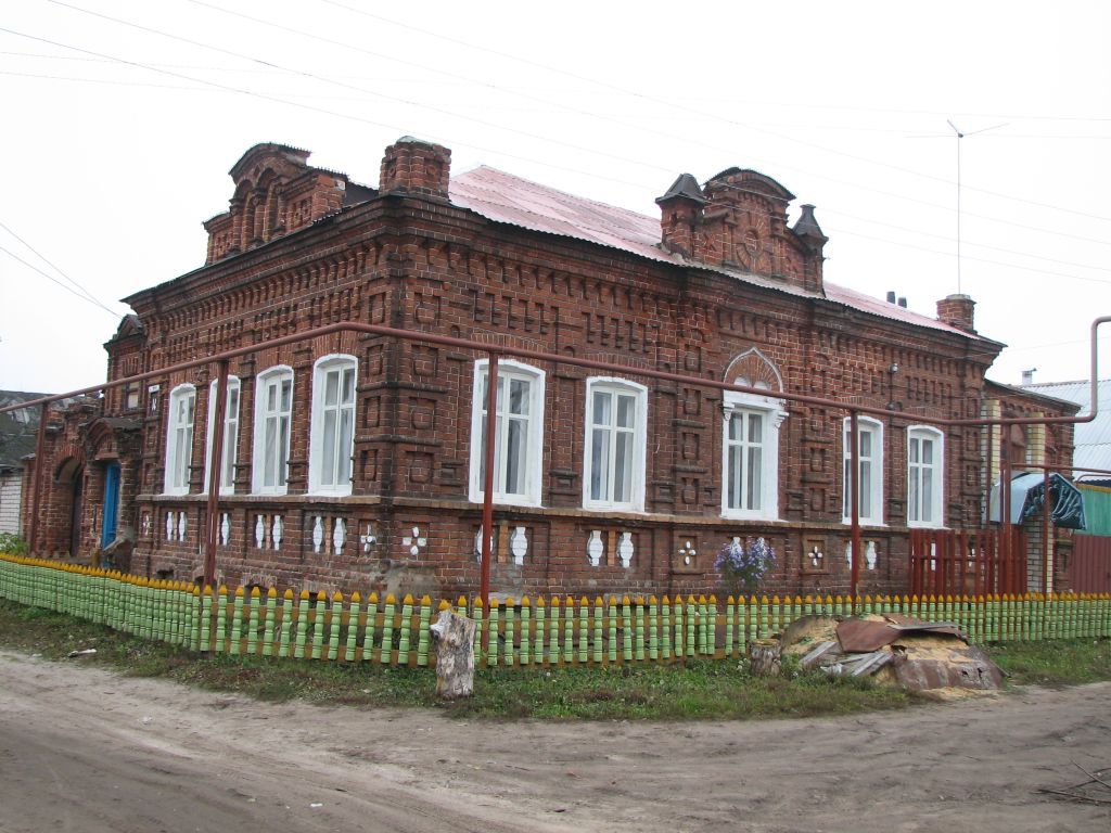 Дом крестьянина И.С.Белова с кирпичными воротами с коваными створами