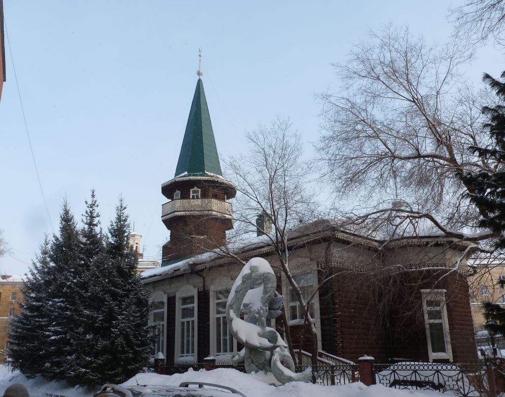 1. Объемно-планировочное решение и габариты здания в плане.2. Фасады:1) материал стен (бревно);2) способ врубки «без остатка»;3) обшивка стен доской (рисунок обшивки);4) габариты и конфигурация минарета;5) габариты и конфигурация балкона;6) ограждение балкона;7) габариты и конфигурация проёмов;8) деревянные наличники оконных проёмов;9) материал и рисунок оконных и дверных проёмов;10) рисунок переплётов окон;11) деревянная резьба наличников окон, карниза, ограждения балкона;12) элементы декора фасадов;13) кирпичный цоколь;14) габариты и конфигурация стропильной крыши, покрытие кровли из листового металла;15) габариты и конфигурация шатровой крыши минарета, покрытие кровли из листового металла;16) материал и диаметр водосточных труб.3. Цветовое решение фасадов.4. Оформление интерьеров:1) габариты и конфигурация антресольных балконов;2) арочные проёмы.