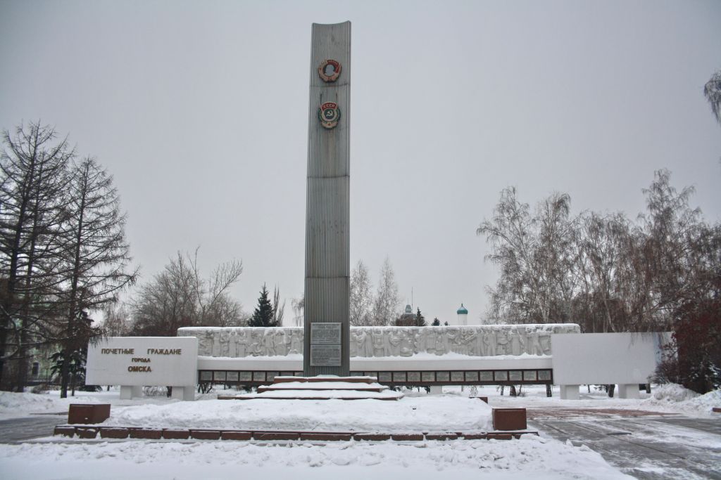Стела в честь награждения Омской области орденом Ленина и г. Омска Орденом Трудового Красного Знамени
