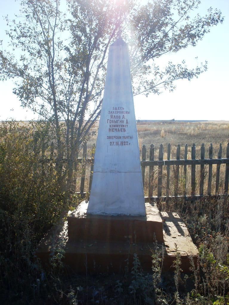 Могила членов Соболевского волисполкома: Ялова, Нечаева, Галыгина, зверски зарубленных белобандитами