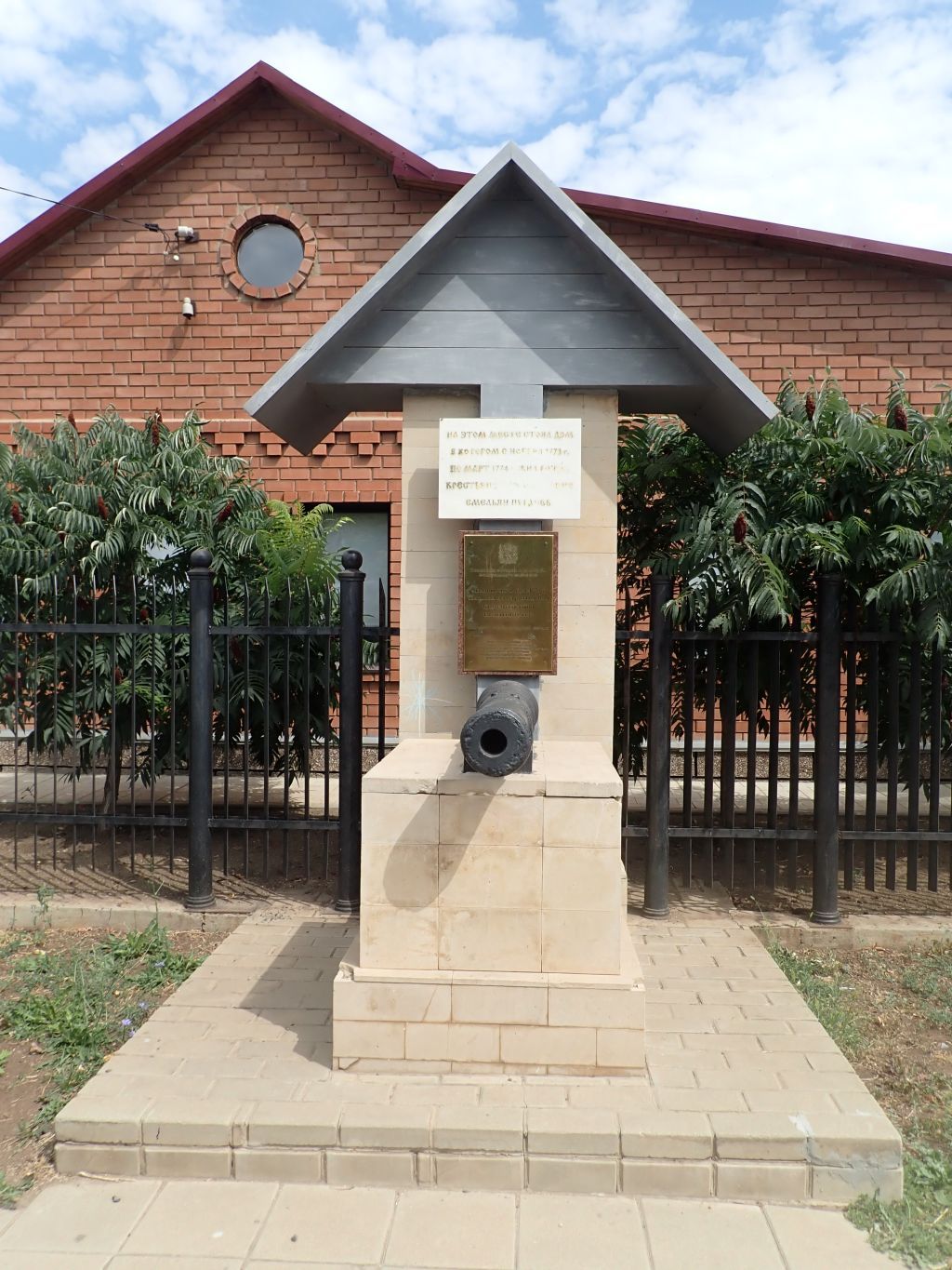 1.1.Расположение объекта:– Оренбургская область, пос. Берды, вблизи пересечения улиц Восстания и Бердинская к юго-востоку от жилого дома по адресу: ул. Восстания, д.30, на месте которого находились «Золотые палаты» Пугачева (дом казака Ситникова).1.2.Габариты, силуэт на дату - 1990-е гг.:– стела 3,3 метра высотой с двухскатной крышей, перед стелой располагается двухступенчатый постамент с чугунной пушкой.1.3.Секторы и направления видовых раскрытий, визуальные связи памятника: – точка наилучшего визуального восприятия объекта культурного наследия в восточном направлении.1.3.1.– точка наилучшего визуального восприятия объекта культурного наследия в юго-восточном направлении.1.3.2.– точка наилучшего визуального восприятия объекта культурного наследия в северо-восточном направлении.1.3.3.– точка наилучшего визуального восприятия объекта культурного наследия в северо-западном направлении.2.Архитектурная охрана:2.1.Объемно-пространственная композиция на дату - 1990- е гг.:– стела 3,3 метра высотой с двухскатной крышей, перед стелой располагается двухступенчатый постамент с чугунной пушкой.2.2.Композиционное и архитектурно- художественное оформление памятника на дату - 1990-е гг.:– стела 3,3 метра высотой с двухскатной крышей, перед стелой располагается двухступенчатый постамент с чугунной пушкой.2.2.1.– стела 3,3 метра высотой на прямоугольном в плане основании, завершающаяся двухскатной крышей и фронтоном, от которого по центральной оси стелы располагается прямоугольная в плане стойка с мемориальной табличкой; – размеры; – форма; – пропорции; – материал; – ориентация (лицевой частью в юго-западном направлении)2.2.2.– постамент двухступенчатый прямоугольный в плане;– размеры; – форма; – пропорции; – материал.2.2.3.– чугунный ствол пушки на лафете, в основании которой по окружности выгравированы символы;– размеры; – форма; – пропорции; – материал.2.2.4.– мемориальная прямоугольная табличка;– размеры; – форма; – пропорции; – материал;– гравировка: «на этом месте стоял дом, в котором с ноября 1773 г. По март 1774 г. жил вождь крестьянского восстания Емельян Пугачев».2.3.Виды отделки поверхности памятника, материал на дату - 1990-е гг.:– пушка на лафете – чугун; – двухступенчатый постамент – кирпич, облицован мраморной плиткой; – стела – кирпич, облицованный мраморной плиткой (основание), металл (стойка), доски из дерева (крыша); – мраморная табличка.2.4.Колористическое решение на дату - 1990-е гг.: – пушка на лафете – окрашена в черный цвет; – двухступенчатый постамент – мраморная светлая плитка; – стела – мраморная светлая плитка (основание), светло-серая (крыша и стойка); – мраморная табличка – белая.Предмет охраны может быть уточнен и дополнен в процессе научно – исследовательских работ и производства ремонтно-реставрационных работ на объекте культурного наследия федерального значения «Памятное место, где в 1773 г. находилась ставка руководителя Крестьянской войны Емельяна Пугачева», 1773 г., расположенный по адресу: Оренбургская область, г. Оренбург, пос. Берды.