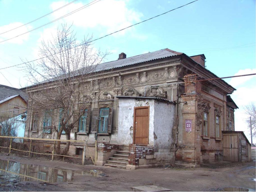 1Объёмно-пространственное и планировочное решение территории^Местоположение границ территории, входящих в границы земельного участка с кадастровым номером 56:44:0453017:28;градостроительные характеристики ансамбля, его роль в композиционно-планировочной структуре города (брандмауэрная периметральная застройка по красной линии квартала с разрывами);спокойный рельеф;2Объёмно-пространственное решение:Объемно-пространственная композиция ансамбля 2-й пол. XIX – нач. ХХ вв.:домовладение по габаритам прямоугольное, вытянуто с запада на восток, расположение жилого дома лицевым фасадом по красной линии застройки вдоль ул. Яицкой, периметральная застройка усадьбы во дворе, въезд на территорию с ул. Яицкой;габариты, высотные и силуэтные характеристики зданий: одноэтажный с мезонином жилой дом (в плане 22,2 м×17,2 м), одноэтажные флигель (в плане 20,5×6,5) и склады (в плане 9,2×6,9).Въезд оформлен каменной оградой с въездными воротами (в плане 8,9×0,7).Брандмауэрные стены, вытянутые вдоль границ домовладения.3Объёмно-планировочное решение:Объемно-планировочная структура ансамбля:жилой дом с южным крылом и строение склада в плане образуют Г-образную конфигурацию вдоль южной и восточной границ домовладения,флигель примыкает к стене соседнего домовладения, вдоль северной границы,въездные ворота в продолжение линии застройки вдоль красной линии ул. Яицкой, южным торцом примыкают к северному фасаду жилого дома;брандмауэрные стены ограждения домовладения белокаменные и кирпичные вдоль южной и северной границы;соотношение застроенных и незастроенных пространств 50/50%4Архитектурно-художественное решение (композиция):Архитектурно-художественное решение периода эклектики;силуэтные характеристики ансамбля: без доминант, скатные кровли не более 40 %, декоративное решение на лицевых фасадах;брандмауэрные исторические стены по периметру домовладения.