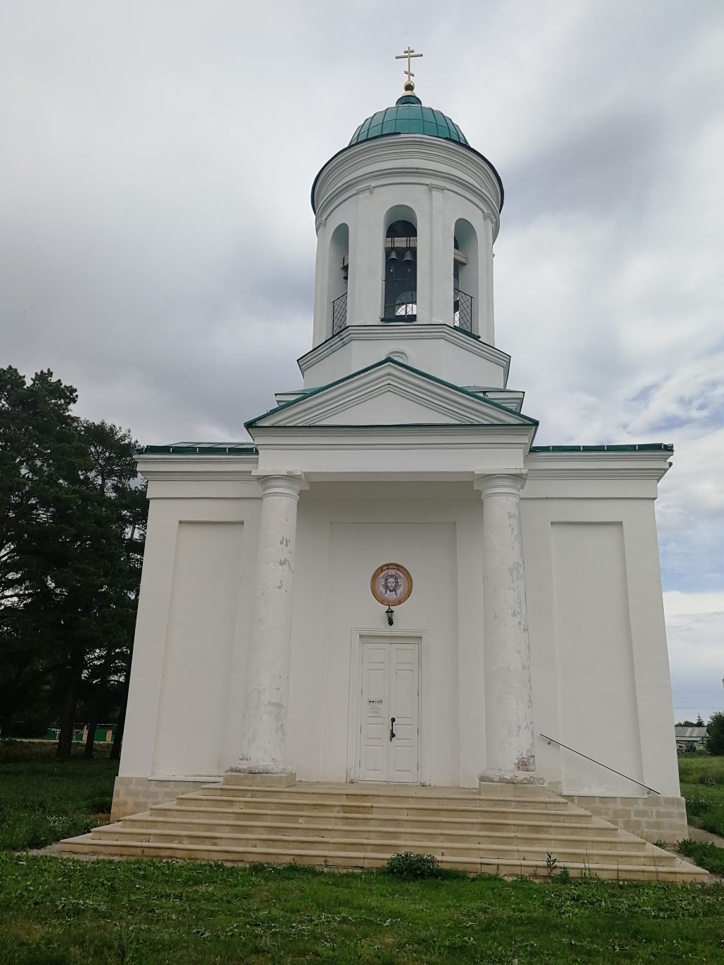 Объемно-пространственное и планировочное решение территории:Местоположение границ территории.Объемно-пространственное решение:Небольшой двухсветный кирпичный храм с симметричным, вытянутым вдоль главной оси планом имеет основной объем в виде четверика, северный и южный фасады которого декорированы четырехколонными портиками дорического ордера с дощатым перекрытием интерколумний.Четверик завершается широким цилиндрическим световым барабаном с двенадцатью проемами и тянутым многообломным карнизом под куполом, увенчанным маленькой шлемовидной главкой на цилиндрической шее.Алтарная часть храма чуть сужена по отношению к четверику, декорирована четырехколонным дорическим портиком с кирпичными клинчатыми перемычками по железным полосам.Трапезная того же размера, что и алтарь, и так же покрытая двухскатной кровлей, соединяется с 4-х ярусной колокольней узким переходом.Конструктивная система здания:Цоколь из песчаника;белокаменные базы и капители колонн, угловые карнизные плиты;кирпичные оштукатуренные стены;кованые решетки окон;деревянное перекрытие;деревянный купол;металлическая фальцевая кровля.Объемно-планировочное решение:Историческое объемно-планировочное решение в габаритах капитальных стен.Архитектурно-художественное решение (композиция) фасадов:Фасады:симметричная композиция;четырехколонный с треугольным фронтоном портик неполного тосканского ордера с южного, восточного и северного фасадов.Колонны перехода;двухсветные ниши проемов;проемы с клинчатой перемычкой основного объема;проемы с полуциркульной перемычкой барабана;тянутое обрамление проемов;волнисто‐ромбическая решетка нижнего яруса окон;решетка квадратными звеньями верхнего яруса окон;тянутый карниз основного объема;филенки четверика;тянутый антаблемент барабана;сферический купол барабана;шейка и шлемовидная главка над куполом.Декоративно-художественная и (или) цветовая отделка интерьеров:Интерьеры:проемы с рассветами и с лучковыми перемычками на внутренние грани;тянутые обрамления внутренней грани проемов;тянутый подоконный карниз барабана;тянутый с дентикулами припотолочный карниз барабана;сферический купол;роспись стен и потолков.