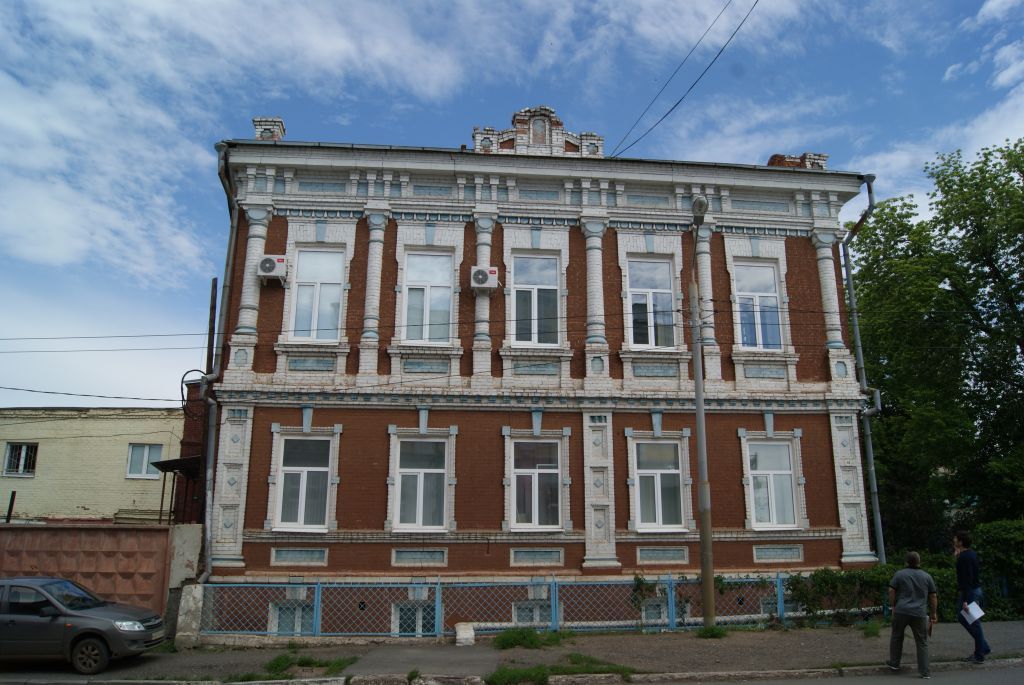 а)объемно-планировочное решение: кирпичный двухэтажный дом с подвалом; прямоугольная в плане конфигурация с выступом дворового ризалита лестничной клетки; габариты в плане - 23,16 х 14,69 метра; коридорная композиционная схема; вальмовая кровля с поперечным выступом брандмауэра и аттиков ризалита;б)строительные конструкции:стены из кирпича размерами254(260) х 124(128) х 66(70) миллиметров с клеймом «Т.З.Р.К.»; сетчатая решетка приямков и крыльца; перекрытие сводами Монье в подвале, деревянное балочное перекрытие первого и второго этажа; белокаменные плиты цоколя; белокаменные детали фасадов (базы и капители пилястр, слезник, надпись аттика); деревянные филенчатые двери; латунная фурнитура производства Тульского завода «В.И. Каменев»; деревянные заполнения оконных проемов; литые балясины лестничного и балконного ограждения;в)фасады: симметричная композиция главного фасада с центральным ризалитом с балконом и аттиком; неоштукатуренная фактура основной плоскости стен с верстовой кладкой и обработкой швов в расшивку; неоштукатуренный белокаменный цоколь с кордоном; оконные проемы подвала с лучковыми перемычками и замком; филенчатый подоконный фриз первого этажа; подоконный карниз криволинейного профиля первого этажа; оконные проемы первого этажа с кирпичным рамочным обрамлением и замком; историческая расстекловка окон; плоские пилястры первого этажа с белокаменными базами, филенками и поребриком на капителях; парадная двустворчатая дверь с «бриллиантовыми» филенками и остекленными вставками; междуэтажный карниз с кронштейнами; подоконные филенки второго этажа, фланкированные маленькими пилястрами; полукруглые пилястры второго этажа с филенчатыми постаментами, белокаменными базами и кубоватыми капителями с ионическими волютами; балкон на кронштейнах из крупных волют с литым ограждением в виде плоских и круглых балясин; оконные проемы второго этажа с «ушами» и очельем с замком; архитрав с фестонами; фриз с филенками и кронштейнами; венчающий карниз большого выноса; аттики с лучковой средней частью, фланкированной пилястрами и криволинейными пряслами с филенчатыми боковыми столбиками;г)интерьеры: сводчатое перекрытие подвала; лепные розетки и припотолочные карнизы растительного орнамента первого и второго этажей; литое ограждение лестницы плоскими балясинами; филенчатые деревянные двери.