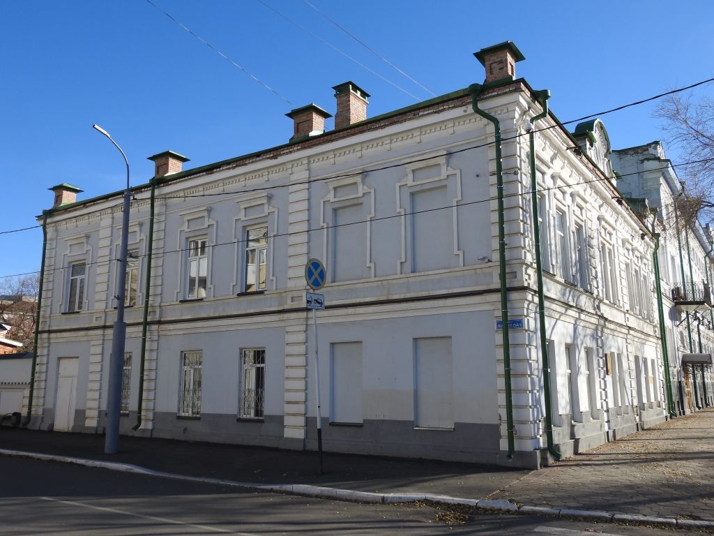 а) объемно-планировочное решение: двухэтажный дом с подвалом; Г-образная конфигурация плана; габариты в плане – 19,38 х 18,3 метра; смешанная планировочная схема; вальмовая кровля с аттиком; б) строительные конструкции: капитальные стены из кирпича размерами 254(263) х 124(127) х 61(64) миллиметр(а) (литера А2); 256(267) х 122(125) х 65(68) миллиметров (литера А3); 259(263) х 112(124) х 61(68) миллиметр(ов) (литера Г4); своды Монье в части подвала; в) фасады: симметричная композиция главного фасада; проемы с клинчатыми перемычками; простой низкий цоколь; муфтированные пилястры с филенками в уровне подоконного фриза второго этажа; междуэтажный карниз; подоконный карниз второго этажа; ломаные ленточные с «ушами» наличники второго этажа; сандрики на кронштейнах второго этажа; антаблемент с кронштейнами и дентикулами карниза; трехчастный аттик с полуциркульным средним пряслом, украшенным дентикулами и круглым слуховым окном; г) интерьеры: лепной декор потолков.