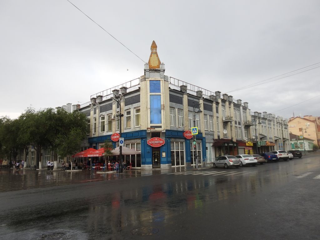 1. Особая градостроительная роль здания: - Участвует в формировании квартала между улицей Краснознаменная и Володарского (бывш. ул. Инженерная и ул. Петропавловская), исторически важной территории.2. Объемная композиция здания: - Здание многоугольное в плане, двухэтажное с подвалом, с входными группами с юго-западной, юго-восточной, и северо-восточной сторон.3. Архитектурно-художественное оформление фасадов здания. - Здание имеет выраженное вертикальное членение, достигнутое раскреповкой одиночными и спаренными пилястрами. Высота пилястр превышает венчающий карниз, образуя парапетные тумбы, между которыми помещены либо скульптурные декоративные элементы в стилистике модерна, либо металлические парапетные решётки. - С вертикальными пилястрами взаимодействуют горизонтальные членения фасадов, декорированные высококачественной каменной штукатуркой. - Лицевые фасады покрыты мелкой глазурованной плиткой белого цвета. - Под окнами выполнены широкие прямоугольный вогнутые ниши, со вставками глазурованной мозаики яркого синего цвета. - Оконные проемы прямоугольные, широкие, «витринного» типа. Окна второго этажа обрамлены «брусковыми» наличниками, которые декорированы параллельными полосами, кольцами. - Со стороны ул. Краснознаменной оконные проемы рассчитаны под двустворчатое полотно. - Дверные проемы выполнены узкими, прямоугольными под однополотенные дверные полотна, а также парадные входы исполнены широкими прямоугольными под двустворчатые дверные полотна. - Со стороны ул. Краснознамённой здание имеет балконные выступы с оригинальным ограждением. - Здание угловое, часть фасада на пересечении ул. Советской и Краснознаменной имеет прямоугольную надстройку в виде башни со стеклянным шпилем. Четыре зубца декорированы имитацией прямоугольных консолей и параллельными линиями выполненные вдавленным рельефом. Вся конструкция является доминирующей в общем объеме здания. - Со стороны дворового фасада декоративные элементы отсутствуют.4. Материал и характер отделки фасадных поверхностей здания: - Глазурованная плитка, тонированные детали архитектурного декора.5. Местоположение, габариты, конфигурация и оформление дверных и оконных проемов здания: - Прямоугольные оконные проемы разной ширины- узкие под одно стекольное полотно, двустворчатые, широкие- витринного типа, прямоугольные наружные дверные проемы, прямоугольные оконные филенчатые оконные проемы над внутренними прямоугольными дверными проемами, внутренние дверные проемы выполнены под двустворчатое филенчатое дверное полотно. Подлежат сохранению размеры и форма дверных и оконных проемов.6. Архитектурно-декоративное оформление интерьеров здания: - Внутренние декоративные элементы: штукатурная отделка интерьеров, арочные сквозные проемы, колонны, лестничные пролеты с кованными элементами в ограждении, лепные элементы потолочного декора, балконные решетки.7. Материалы и конструкции здания: - Кирпичные стены, стропильные конструкции вальмовой крыши, несущие конструкции.8. Стилистические особенности и историческая функция здания : - Образец стилистики рационального модерна, начала XX века, представляющий значительную историко-культурную ценность.9. Иные особенности предмета охраны: - местонахождение и роль объекта культурного наследия в композиционно-пла