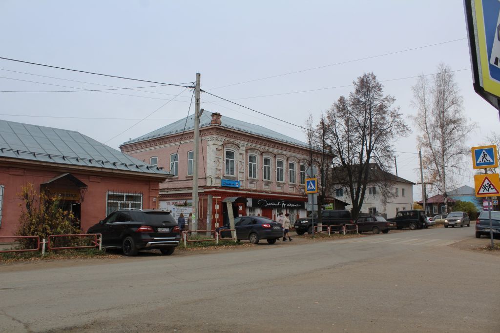 1. Градостроительная охрана1.1 Рядовое расположение на линии застройки ул. Первомайской - фиксация исторической квартальной сетки1.2 Бассейн визуального восприятия в границах линий застройки улицы Первомайская и в створе ул. Кирова с удалением до 100 м1.3 Расположение в западной части усадебного комплекса, включающего в себя А) \"Лавку торговую Соснина\" и Б) \"Дом купца И.И. Красильникова (компания \"Зингер\")\"2. Архитектурная охрана (экстерьер)2.1 Объемно-пространственное решение - 2-этажное здание, в плане прямоугольное, с пристройкой-ретирадой к юго-восточному фасаду. Крыша стропильная скатная, кровля металлическая фальцевая с организованным водостоком. Цвет кровли и водосточных труб - сурик, медянка2.2 Материал стен - керамический полнотелый кирпич 19 в.2.3 Материал фасадной поверхности - лицевая кирпичная кладка с расшивкой швов, окраска по кирпичу2.4 Декоративная отделка фасадов из кирпича в стилистике архитектурной эклектики:2.4.1 - ступенчатый карниз с сухариками и поребриком2.4.2 - ушастые наличники лучковых окон 2-го этажа с бриллиантовой гранью2.4.3 - межэтажный пояс с филенками под окнами, карнизом с поребриком и сухариками2.4.4 - ушастые наличники лучковых окон 1-го этажа с поребриком и поставами для ставень2.4.5 - дверные проемы в обрамлении ушастых наличников с поребриком и металлическими коваными ставнями2.4.6 - филенчатые лопатки по флангам 1-го этажа2.4.7 - металлический кованый навес над входом на 2-й этаж (с учетом воссоздания)2.5 Расположение, габариты, историческая расстекловка оконных проемов. Материал оконных рам - дерево.2.6 Расположение, габариты дверных проемов, в том числе не используемых3. Архитектурные особенности (интерьер)3.1 Планировочное решение - расположение капитальных стен, лестниц, габариты и конфигурация проемов в капитальных стенах3.2 Тянутые потолочные карнизы в помещениях 2-го этажа4. Мемориальные особенности4.1 Подлинный объект материальной культуры, отражающий социально-экономическое развитие края в конце 19 в.