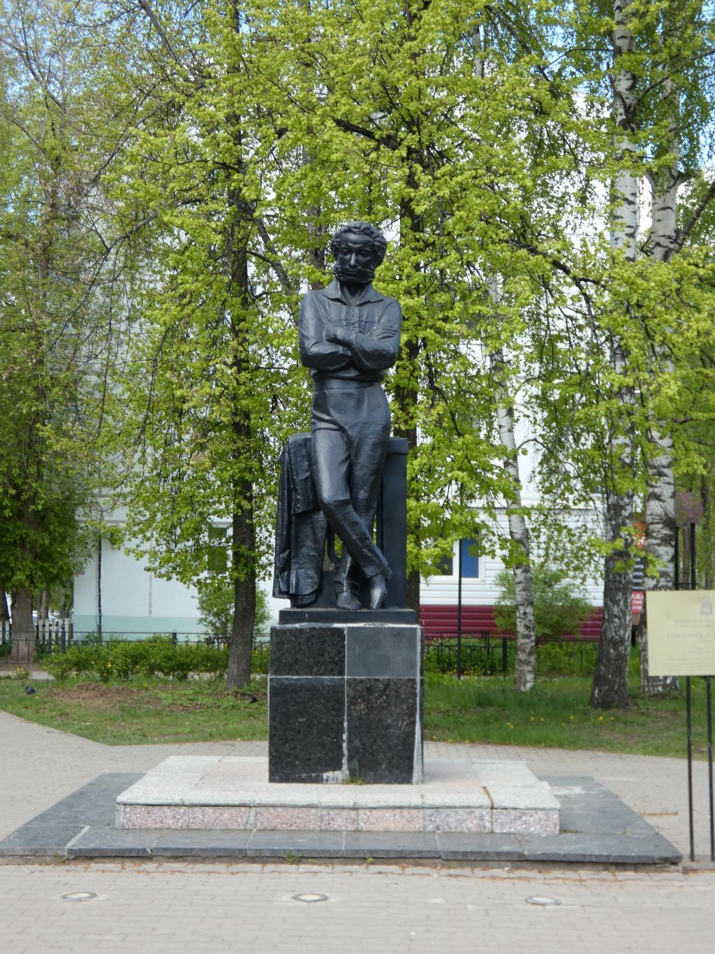 1. Градостроительные характеристики1.1Расположение в центре сквера на пересечении ул. Мира и К. Маркса, напротив здания краеведческого музея1.2Бассейн визуального восприятия вдоль диагональных аллей сквера, с прилегающих пространств с удалением до 70 м.2. Архитектурные особенности:2.1Ростовая скульптура из медного листа, выполненная методом выколотки, на постаменте, облицованном гранитом2.2Двухступенчатое основание постамента, облицованное натуральным камнем3. Мемориальные особенности3.1Памятник монументального искусства, связанный с именем русского поэта А.С. Пушкина3.2Авторская работа скульптора А.А. Уральского