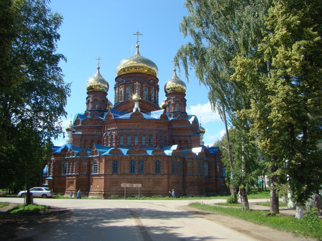 1. Градостроительные особенности:1.1Расположение в центре площади (сквера), образованной при пересечении ул. Урицкого, Ленина и Степана Разина – архитектурная и высотная доминанта исторического центра1.2Бассейн визуального восприятия в границах линий застройки ул. С. Разина, Урицкого, площади им. Ленина2.Архитектурные особенности (экстерьер):2.1Объемно-пространственное решение – двусветный четырехстолпный, трехпрестольный храм-базилика с трапезной и колокольней над притвором2.2Материал стен – полнотелый керамический кирпич начала 20 в.72.3Материал фасадной поверхности – лицевая кирпичная кладка, облицовка цоколя известняковыми блоками2.4Характер декора фасадов в стилистике архитектурной эклектики с элементами «неорусского» стиля:2.4.1- главы (шлемовидная и лучковые) на кирпичных световых барабанах:- центральный барабан: профилированный венчающий карниз с сухариками, филенчатый фриз, арочные оконные проемы в обрамлении наборных наличников, с кокошниками;- угловые барабаны: венчающий профилированный карниз, арочные оконные проемы;2.4.2- два ряда закомар под кирпичными барабанами глав;2.4.3- арочные фронтоны над ризалитами на фасадах основного объема храма;2.4.4- венчающий ступенчатый карниз с сухариками, филенчатый фриз;2.4.5- тройные арочные окна в обрамлении наборных наличников с кокошниками, подоконный профилированный пояс с сухариками;2.4.6- двойные арочные окна в обрамлении наборных наличников с килевидными кокошниками, подоконный профилированный пояс, филенки с кирпичным рельефом в виде крестов;2.4.7- по флангам фасадов лопатки с филенками и полуколонками;2.4.8- вынесенные входные группы с северного, южного, западного фасадов: главки на глухих барабанах, кокошники, профилированный карниз, филенчатый фриз (южная и северная входная группа), порталы входов: щипцовый кокошник, трехчетвертные колонны;2.4.9- двусветная апсида с крытой галереей в уровне первого света: кокошник, венчающий профилированный карниз с сухариками, филенчатый фриз, профилированный пояс с сухариками, арочные оконные проемы в обрамлении наборных наличников, с кокошниками,подоконный поясок с сухариками, подоконные филенки с кирпичным рельефом2.5Входные филенчатые двупольные двери с остеклением в верхней части, с остекленной фрамугой, декоративная металлическая решетка во фрамуге дверей, на окнах2.6Декоративное оформление водоприемных воронок2.7Расположение, габариты, конфигурация, расстекловка оконных проемов (в том числе не используемых), материал оконных рам - деревоСм. пп. 2.4.5, 2.4.62.8Расположение, габариты, конфигурация дверных проемов (в том числе не используемых). Дверные полотна деревянные филенчатые с остекленными фрамугами2.9Кирпичная колокольня-восьмерик на четверике в соответствии с проектом А.Б. Турчевича2.10Глухие кованые решетки на окнах и в фрамугах дверей3. Архитектурные особенности (интерьер):3.1Планировочное решение – расположение капитальных стен, лестниц, столбов, габариты и конфигурации проемов3.2Железобетонные сводчатые перекрытия - над центром храма купол, над крайними нефами – парусные своды, над апсидами конхи, над трапезной – крестовый свод3.3Маршево-набежная железобетонная монолитная лестница на звоны и хоры с железобетонным ограждением в северном помещении притвора3.4Профилированные штукатурные наличники и пояски стеновых панелей3.