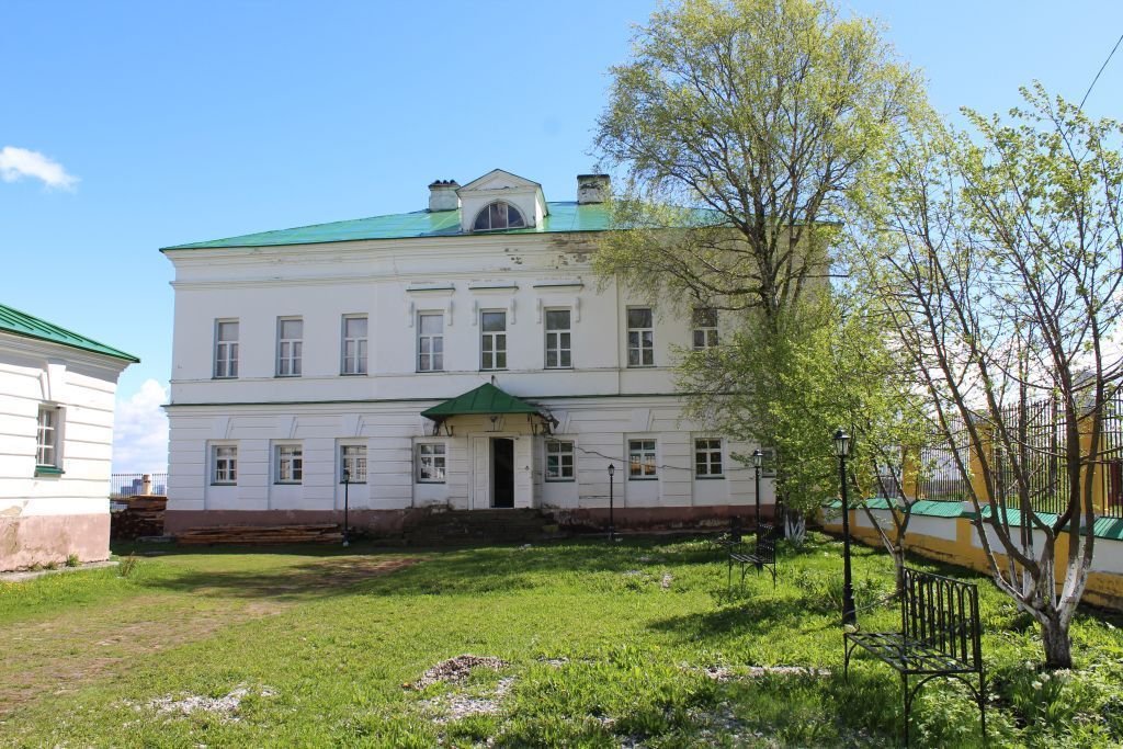 1. Градостроительные особенности1.1 Расположение в островной части г. Усолье на набережной р. Камы севернее Спасо-Преображенского собора1.2 Бассейн визуального восприятия ограничен левым берегом р. Кама, осью ул. Преображенская, осью ул. Пермская, переулком, расположенным в 83 м к северу от территории усадьбы1.3 Композиция и состав усадебного комплекса: главный дом, расположенный в восточной части территории, конюшни, перпендикулярные главному дому, металлическая ограда на кирпичном цоколе с кирпичными калитками, ограждающая территорию усадьбыГлавный дом2. Архитектурные особенности (экстерьер)2.1 Объемно-пространственное решение – прямоугольное в плане, 2-этажное кирпичное здание под скатной кровлей.2.2 Материал стен: керамический полнотелый кирпич начала XIX в.2.3 Материал фасадной поверхности – известковая штукатурка, окраска в два цвета по штукатурному слою.2.4 Крыша стропильная скатная, кровля металлическая фальцевая с организованным водостоком.2.5 Характер декоративной отделки фасадов в стилистике архитектуры русского классицизма начала XIX века:2.5.1 - слуховое полуциркульное окно на западном фасаде;- ризалит западного фасада в три окна с сандриками-полочкой на кронштейне2.5.2 - штукатурный профилированный карниз2.5.3 - междуэтажный профилированный карниз2.5.4 - горизонтальная рустовка стен 1-го этажа;- прямоугольные окна в нишах с веерным замком2.5.5 - каменное крыльцо на западном фасаде с металлическим кованым навесом над ним2.5.6 - ризалит восточного фасада с треугольным фронтоном;- балкон на кронштейнах с металлическим кованым ограждением;- окна 2-го этажа ризалита с сандриками-полочкой на кронштейнах2.6 Расположение, количество, габариты дверных проемов, в т.ч. не используемых2.7 Расположение, количество, габариты, расстекловка оконных проемов. Материал оконных рам - дерево. См. пп. 2.5.1, 2.5.43. Архитектурные особенности (интерьер)3.1 Планировочное решение – анфиладное: расположение капитальных стен, лестниц, расположение, габариты и конфигурация проемов3.2 Сводчатые перекрытия 1-го этажа с распалубками над проемами3.3 Деревянная трехмаршевая лестница на 2-й этаж3.4 Печи-голландки в помещениях 2-го этажа3.5 Камин в зале 2-го этажа3.6 Потолочные профилированные карнизы в помещениях 2-го этажа3.7 Концентрические потолочные розетки в помещениях 2-го этажа3.8 Настенная живопись в технике гризайль. Требует раскрытия и реставрации3.9 Филенчатые деревянные двупольные двериКонюшня4. Архитектурные особенности (экстерьер)4.1 Объемно-пространственное решение – прямоугольное в плане, 1-этажное кирпичное здание под скатной кровлей.4.2 Материал стен: керамический полнотелый кирпич начала XIX в.4.3 Материал фасадной поверхности – известковая штукатурка, окраска в два цвета по штукатурному слою.4.4 Крыша стропильная скатная, кровля металлическая фальцевая с организованным водостоком.4.5 Характер декоративной отделки фасадов в стилистике архитектуры русского классицизма начала XIX века:4.5. - штукатурный профилированный карниз4.5.2 - горизонтальная рустовка стен;- прямоугольные окна в нишах с массивным веерным замком4.5.3 - междуэтажный профилированный карниз4.6 Расположение, количество, габариты дверных проемов, в т.ч. не используемых4.7 Расположение, количество, габариты, расстекловка оконных проемов. Материал оконных рам - дерево. См. пп. 2.5.25. Архитектурные особенност