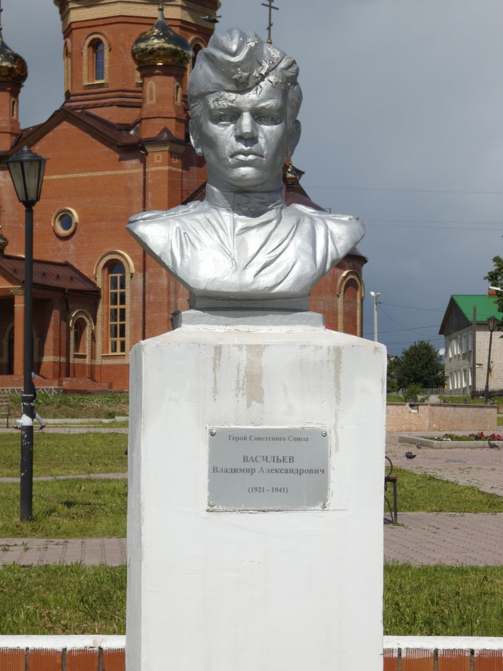 1. Градостроительные характеристики 1.1 Расположение в административном центре поселка, формирование площади1.2 Бассейн визуального восприятия вдоль ул. Ленина и Кирова с удалением на 100 м2. Архитектурные особенности (состав мемориального ансамбля)2.1 - стела с рельефным изображением Ордена Отечественной Войны и мемориальной доской с текстом: «13808 земляков ушли на фронты Великой Отечественной, 7317 воинов погибли на полях сражений»; - «Вечный огонь» перед стелой2.2 - ростовая скульптура солдата2.3 - «Стена памяти» с мемориальными досками, на которых выгравированы фамилии земляков, не вернувшихся с фронтов Великой Отечественной войны2.4 - бюст Героя Советского Союза В.А. Васильева2.5 - бюст Героя Советского Союза А.И. Грачева2.6 - бюст Героя Советского Союза Г.С. Ульянова2.7 - бюст Героя Советского Союза М.И. Конева2.8 - самоходная установка СУ-152 на постаменте2.9 - декоративное чугунное ограждение с изображением пятиконечной звезды3. Мемориальные особенности 3.1 Мемориальный ансамбль связан с борьбой советского народа в годы Великой Отечественной войны. Ансамбль имеет в своем составе подлинный объект материальной культуры – самоходную установку СУ-152